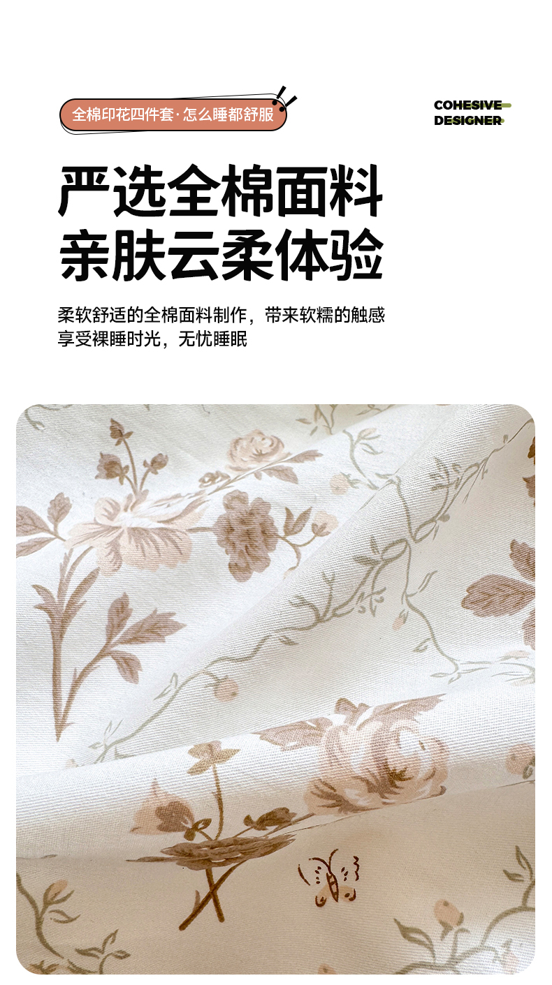 (总)沐棉家居 2025新款全棉印花四件套,安娜花园,春风慕颜,春色满园,淡香花语,蝴蝶结,花梦,可爱熊猫,露丝,嘻嘻兔,幸福小兔,优雅花朵,紫花小羊,紫藤蔓蔓