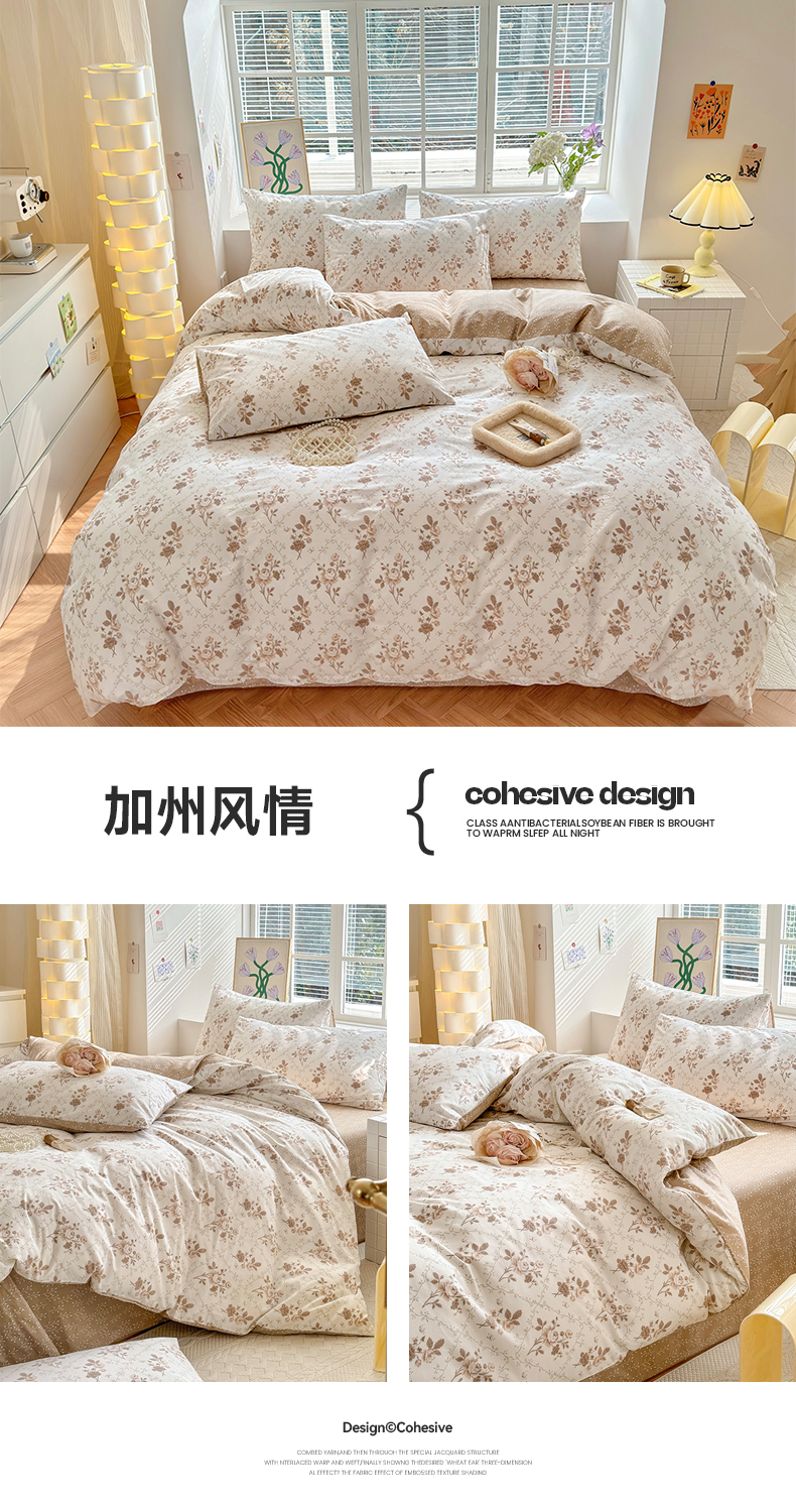 商品名称:沐棉家居 2024新款小清新全棉13372印花单被套 加州风情