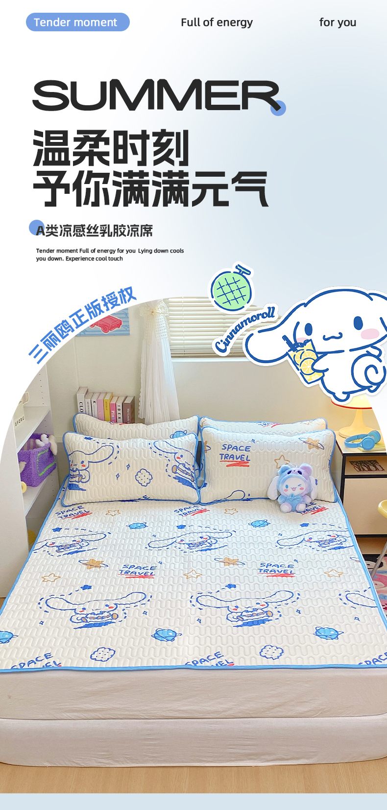 商品名称:澳萝拉 2024新款A类凉感丝三丽鸥乳胶凉席 星空大耳狗