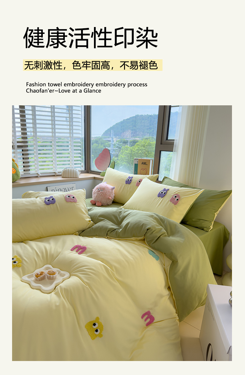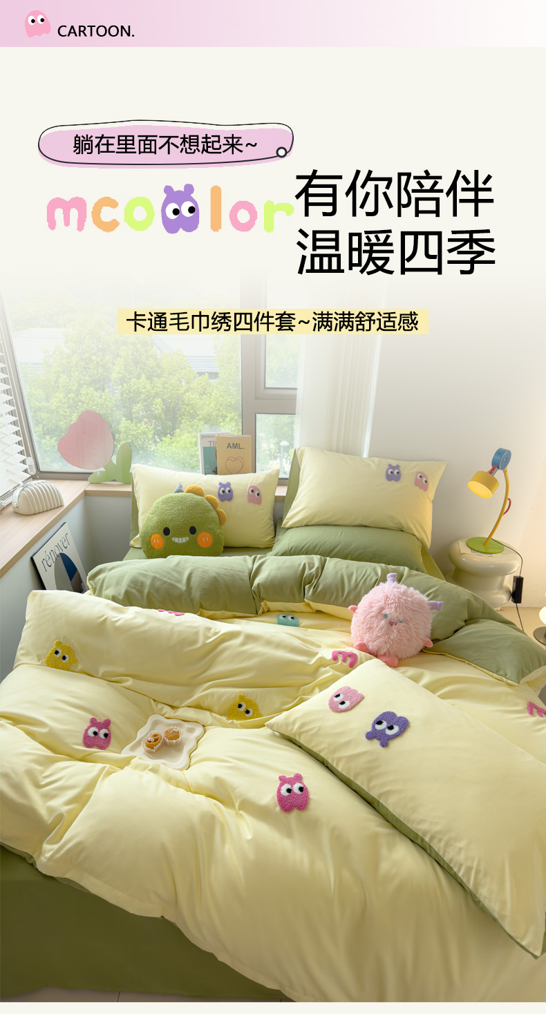 当前位置: 91家纺网 > 商品网购 > 床品套件 > 四件套 > 毛巾绣四件套 > 曼谷 年新款多巴胺毛巾绣四件套柔软磨毛床上用品水洗棉套件 多巴胺-奶黄清绿