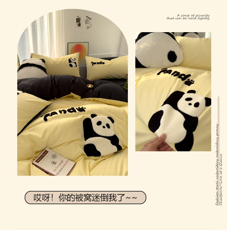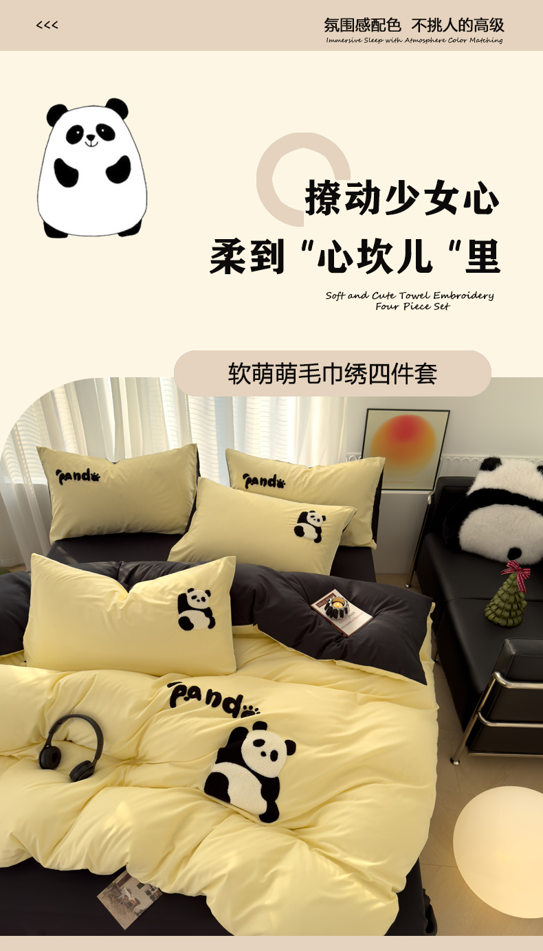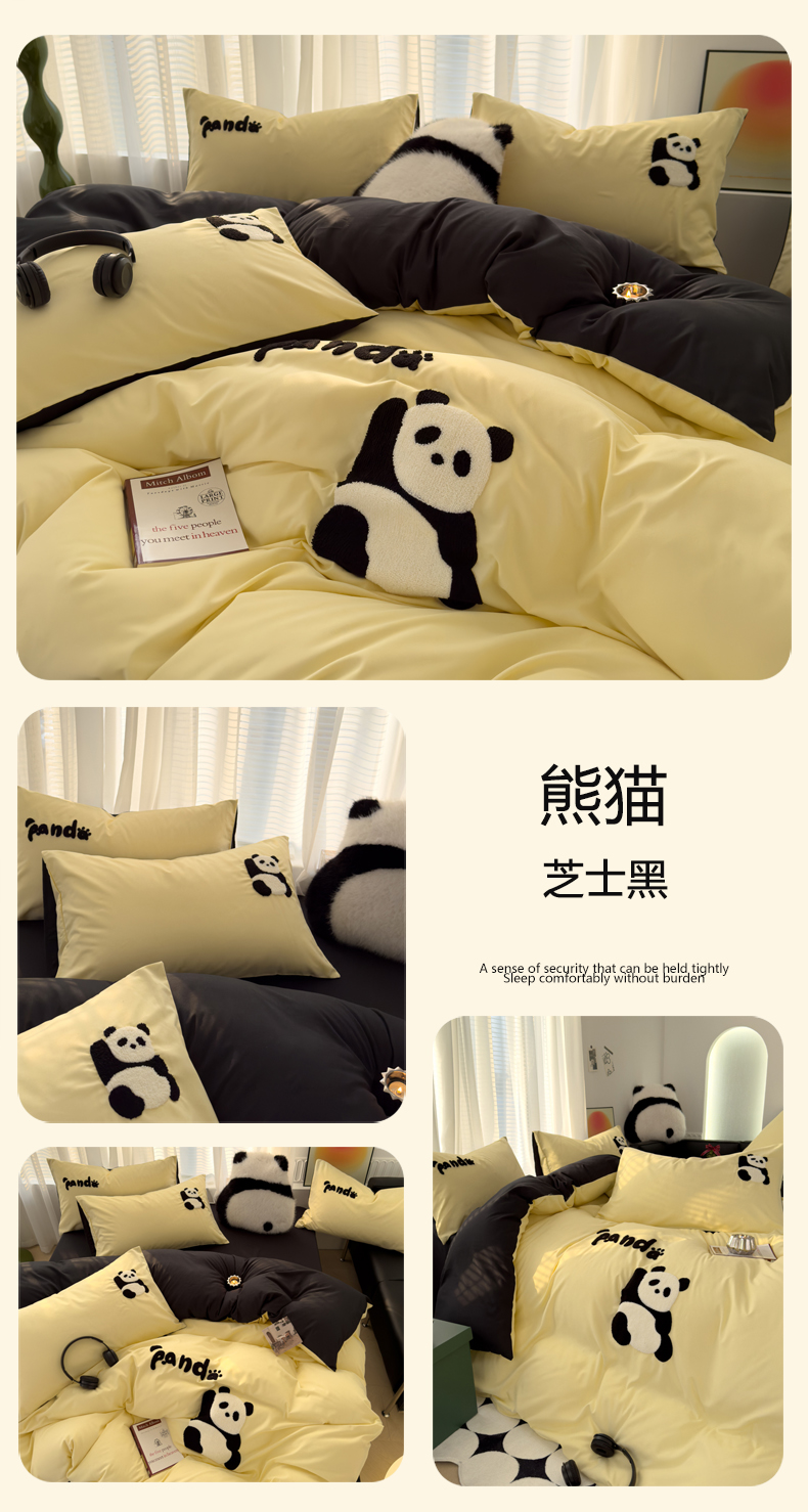 当前位置: 91家纺网 > 商品网购 > 床品套件 > 四件套 > 毛巾绣四件套 > 曼谷家纺 年新款熊猫毛巾绣四件套柔软磨毛床上用品水洗棉套件 熊猫-芝士黑