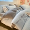 启程家纺 2024新款A类加厚北极绒拼牛奶绒字母刺绣四件套 北极绒-天蓝+中灰