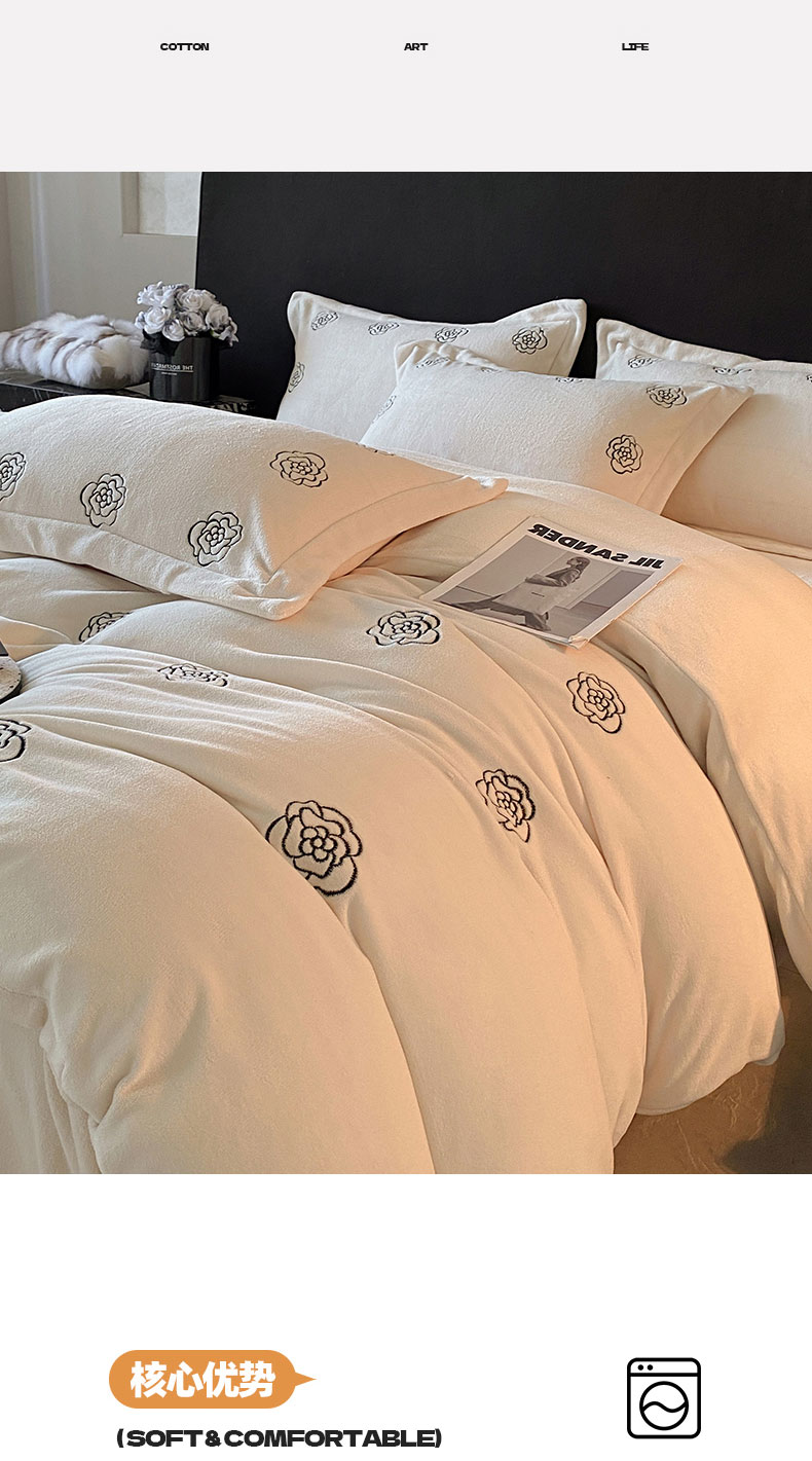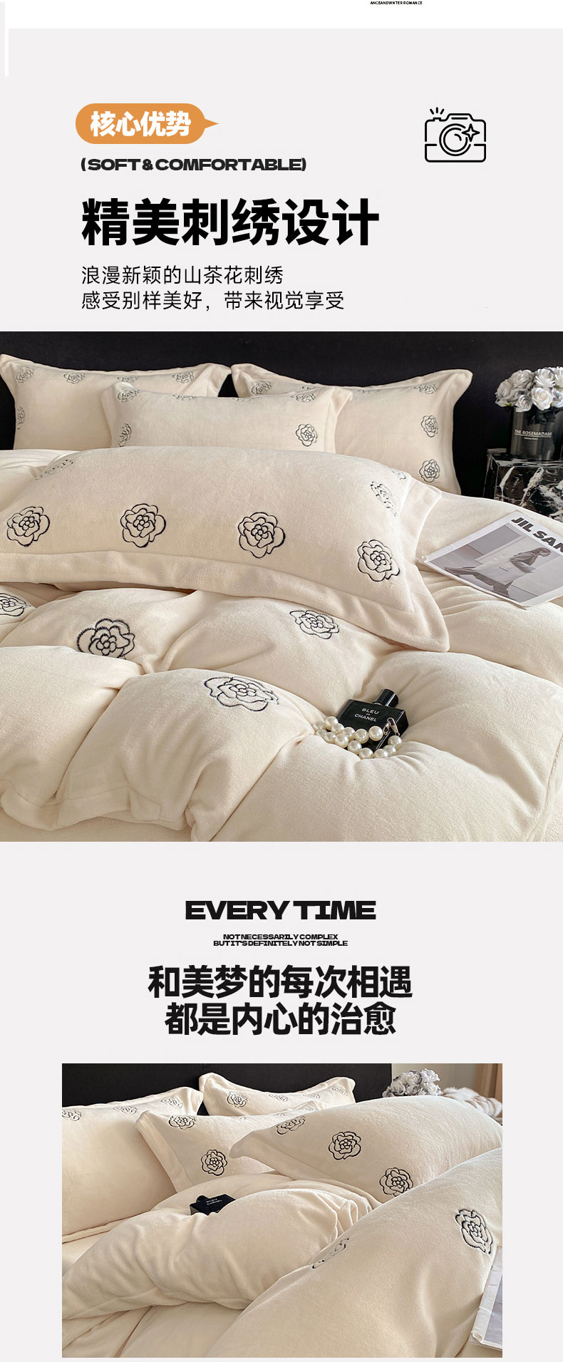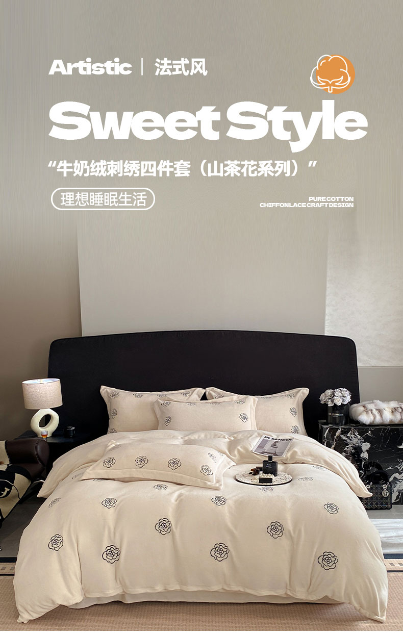 (总)你好美丽 2025新款A类200克牛奶绒山茶花刺绣四件套