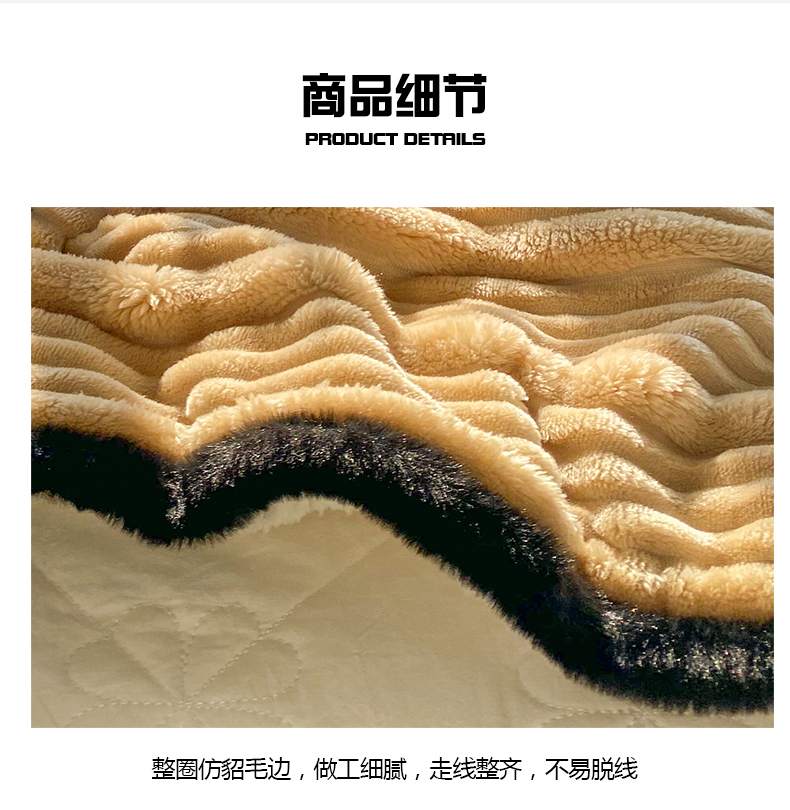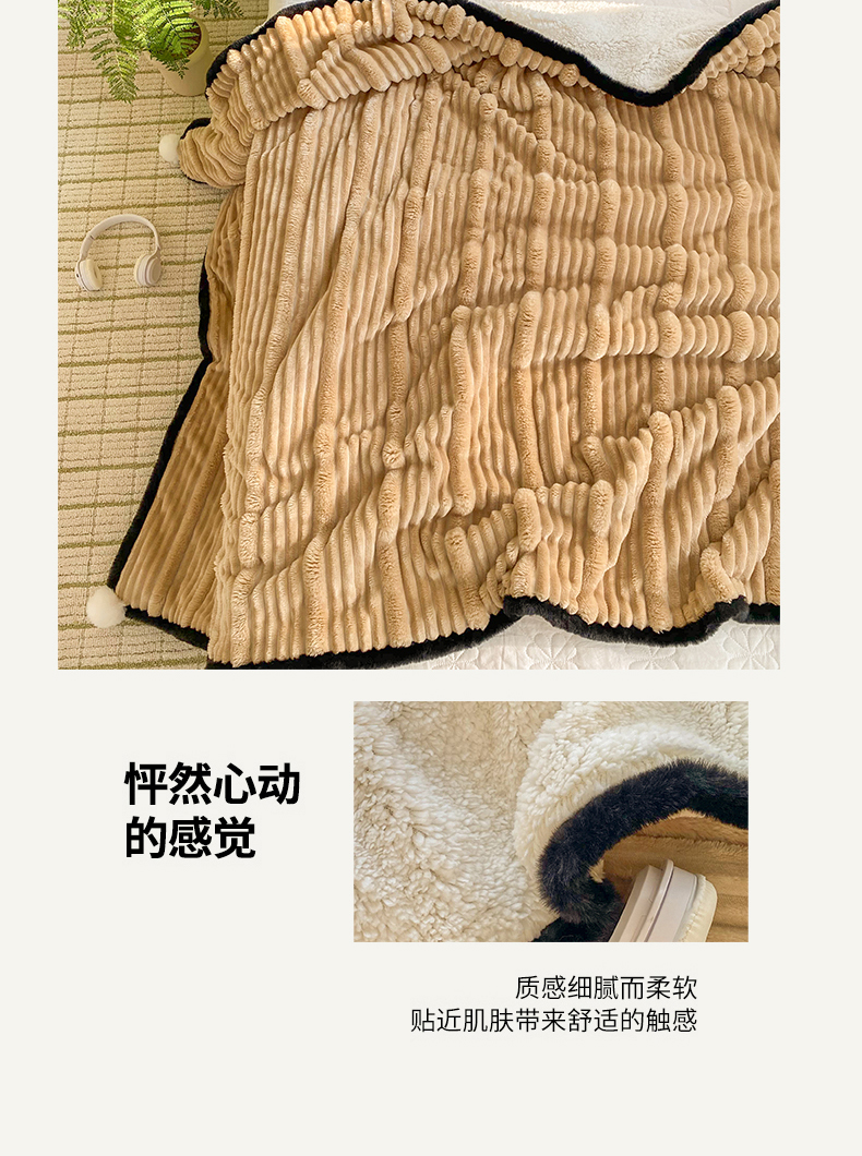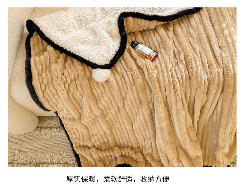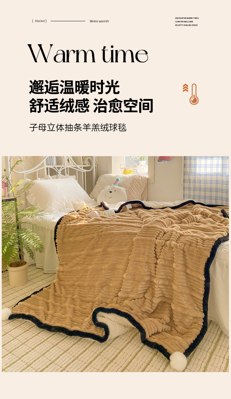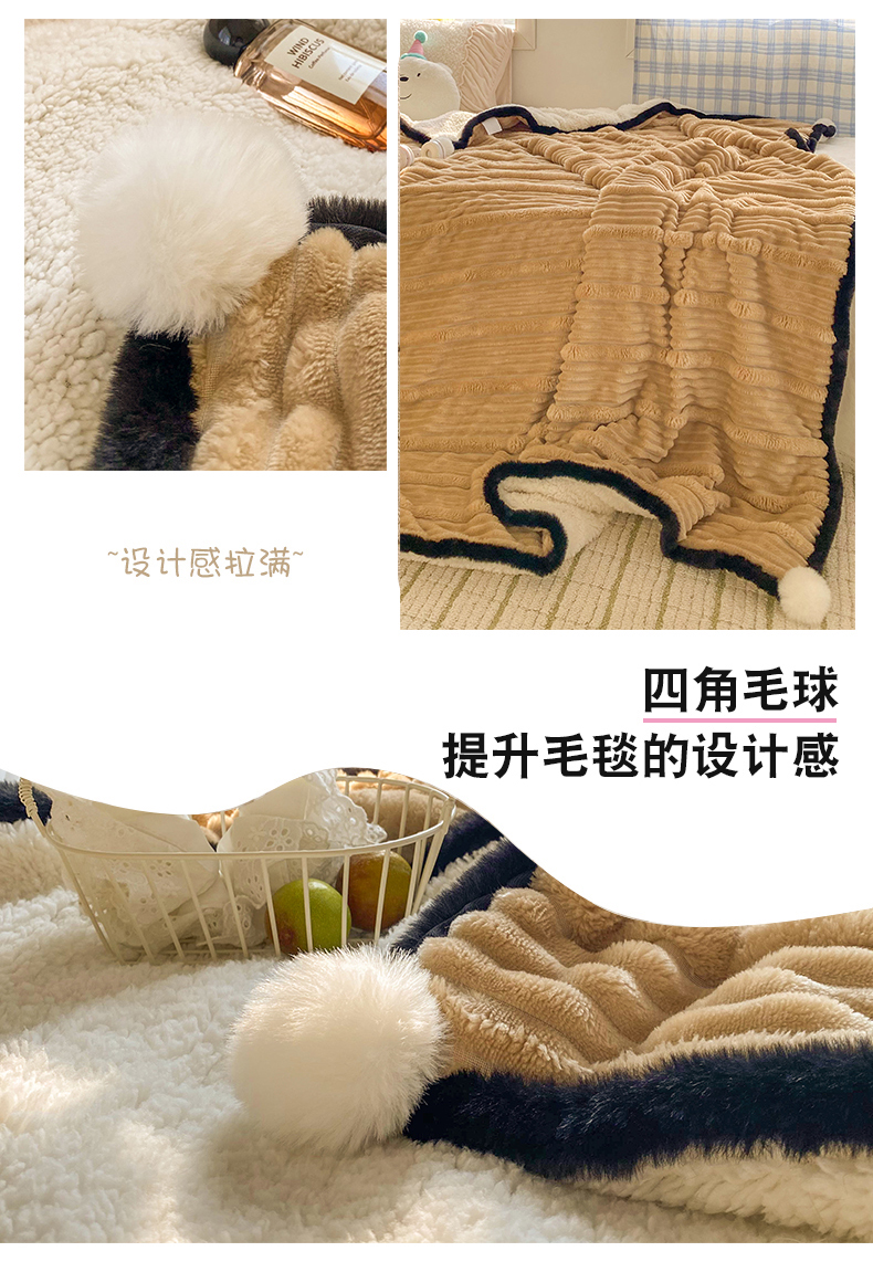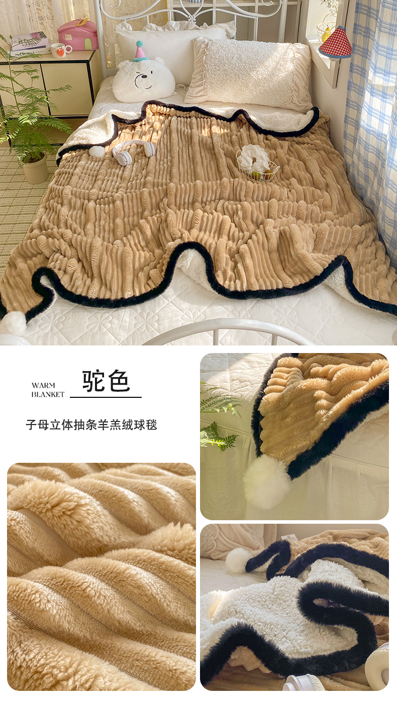 潮邦 2025秋冬子母抽条羊羔绒球毯 子母抽条球毯-驼色