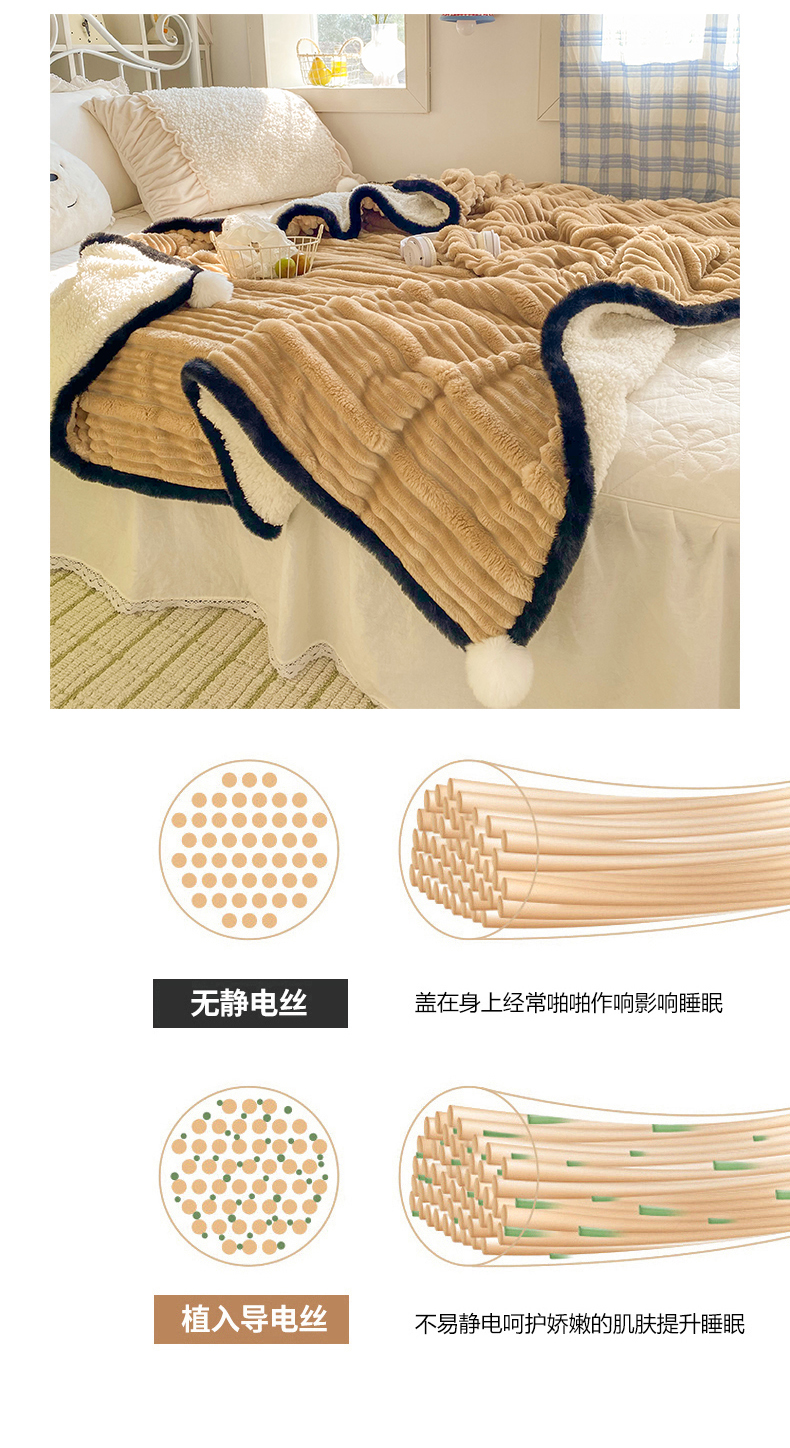 商品名称:潮邦 2025秋冬子母抽条羊羔绒球毯 子母抽条球毯-驼色