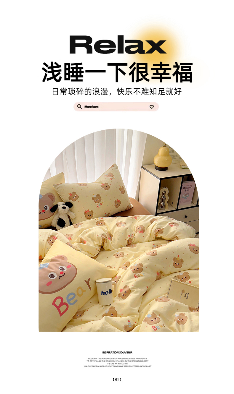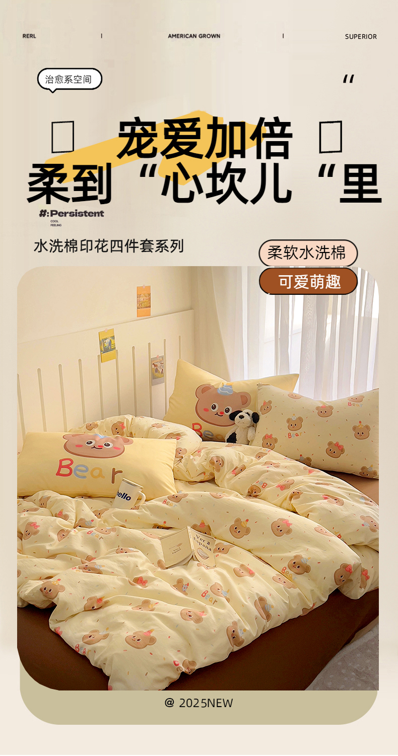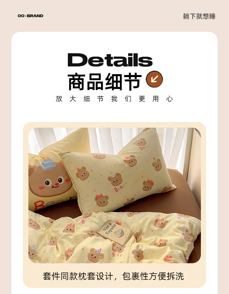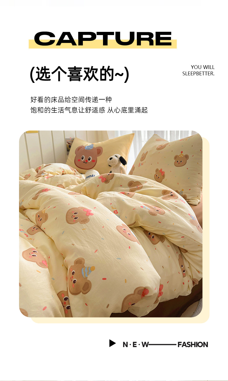 当前位置: 91家纺网 > 商品网购 > 床品套件 > 四件套 > 水洗棉四件套 > 春光里 2025新款水洗棉印花系列四件套 黄油小熊