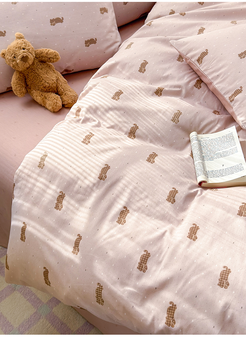 (总)清雅福 2026春夏新款INS小清新40支全棉13372单被套第一批,棒棒糖女孩,春之约定,点点小狗,动物聚会,豆丁小熊,粉心狗,富贵狗,果子象,含羞草,假日小狗