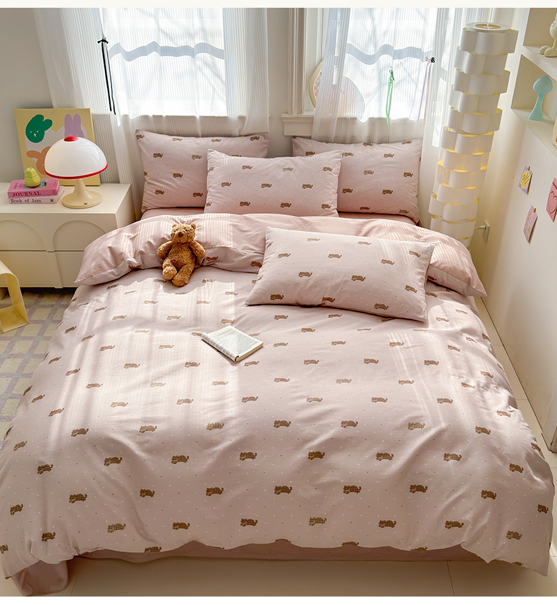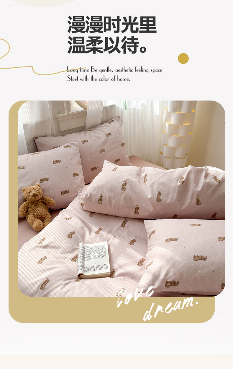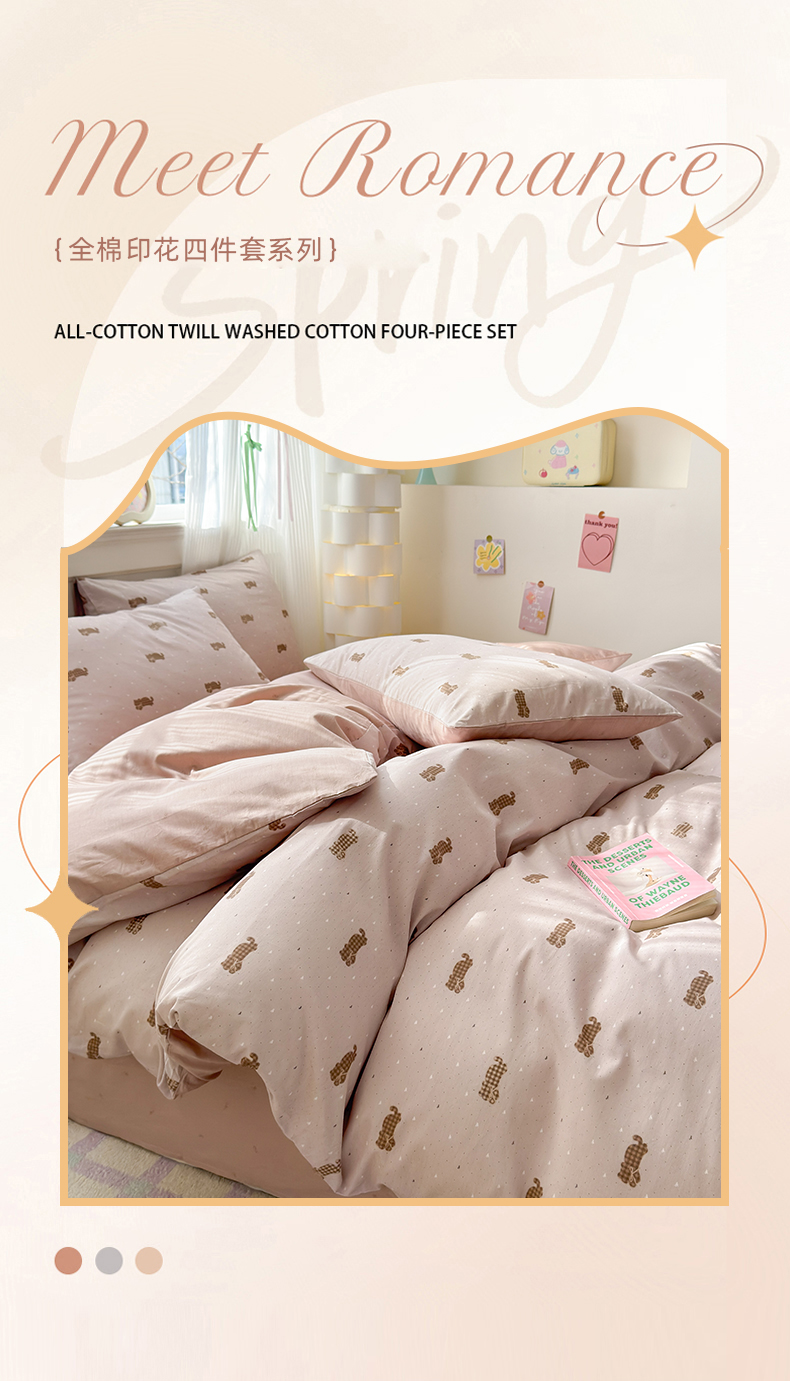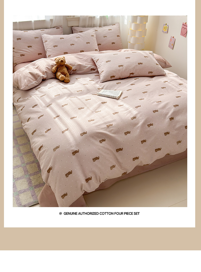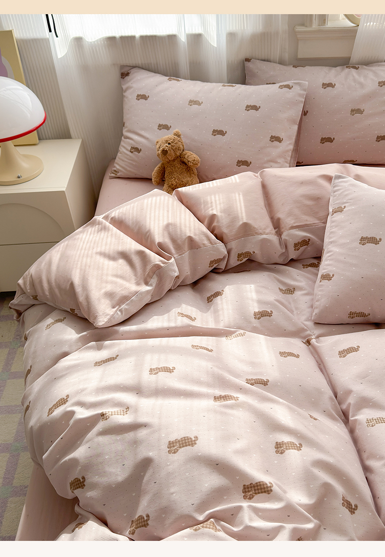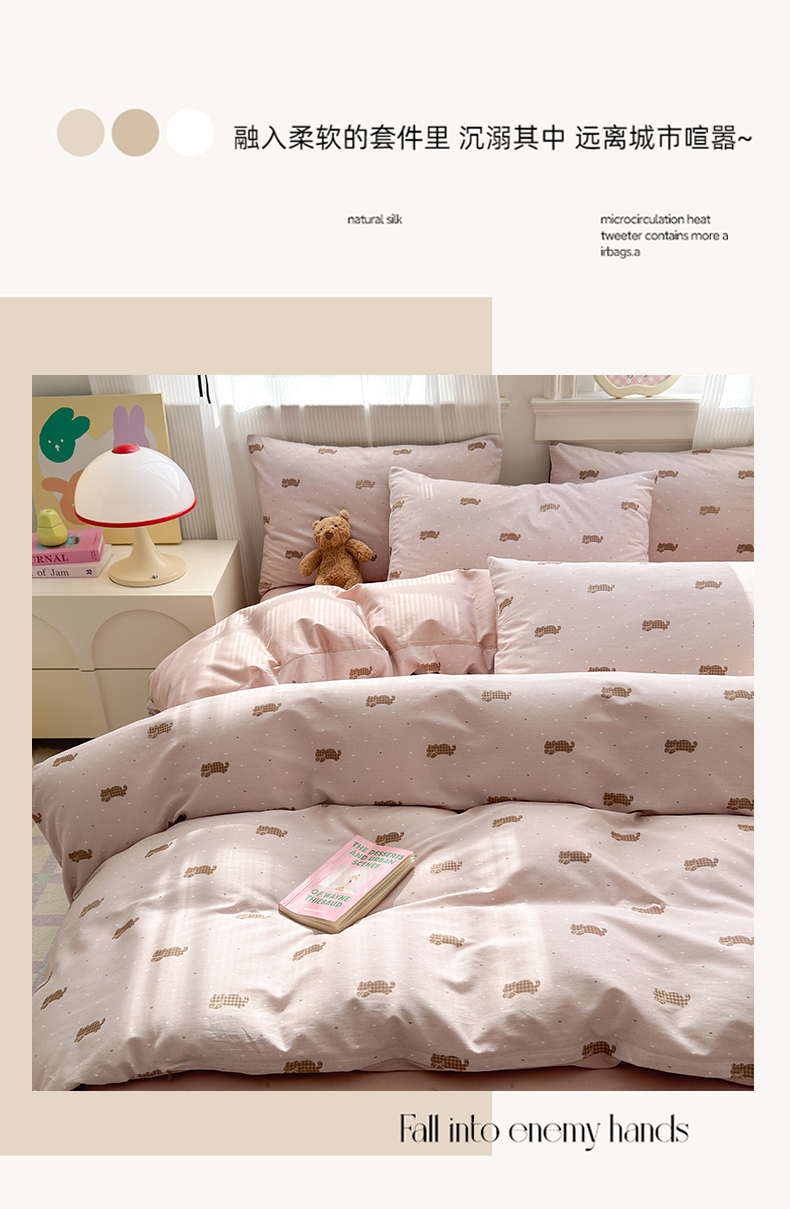 (总)清雅福 2026春夏新款INS小清新40支全棉13372四件套第一批,棒棒糖女孩,春之约定,点点小狗,动物聚会,豆丁小熊,粉心狗,富贵狗,果子象,含羞草,假日小狗