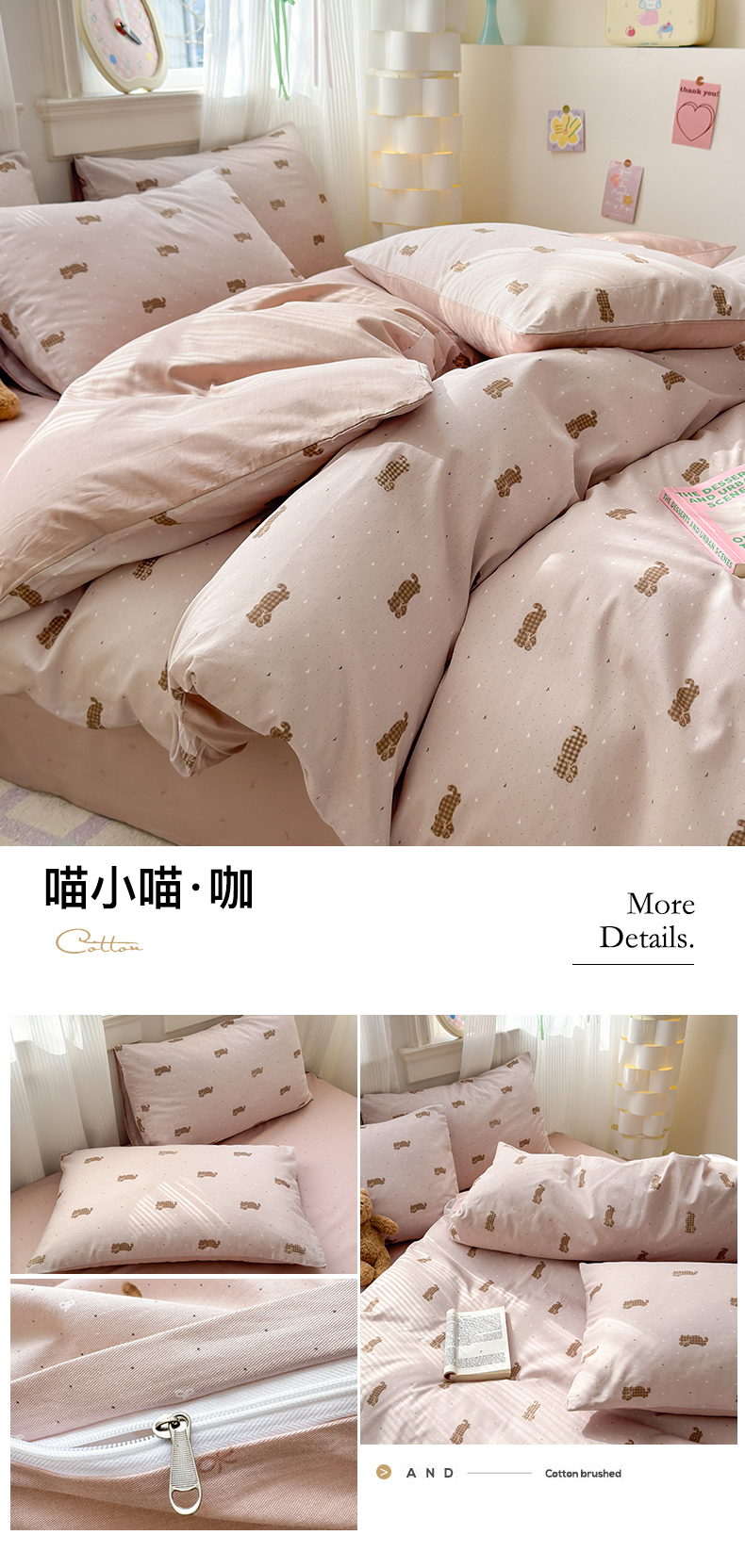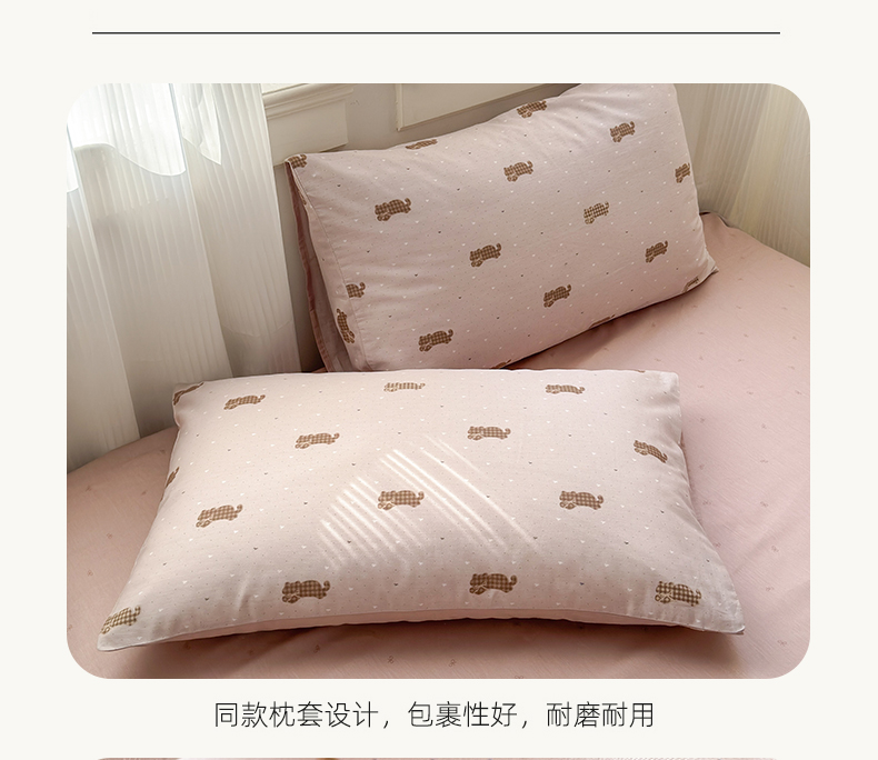 商品名称:清雅福 2025全棉13372小清新四件套和单被套早春系列第二批--单枕套 喵小喵·咖