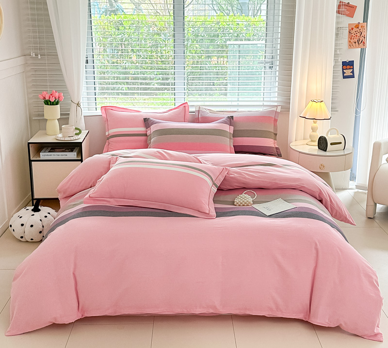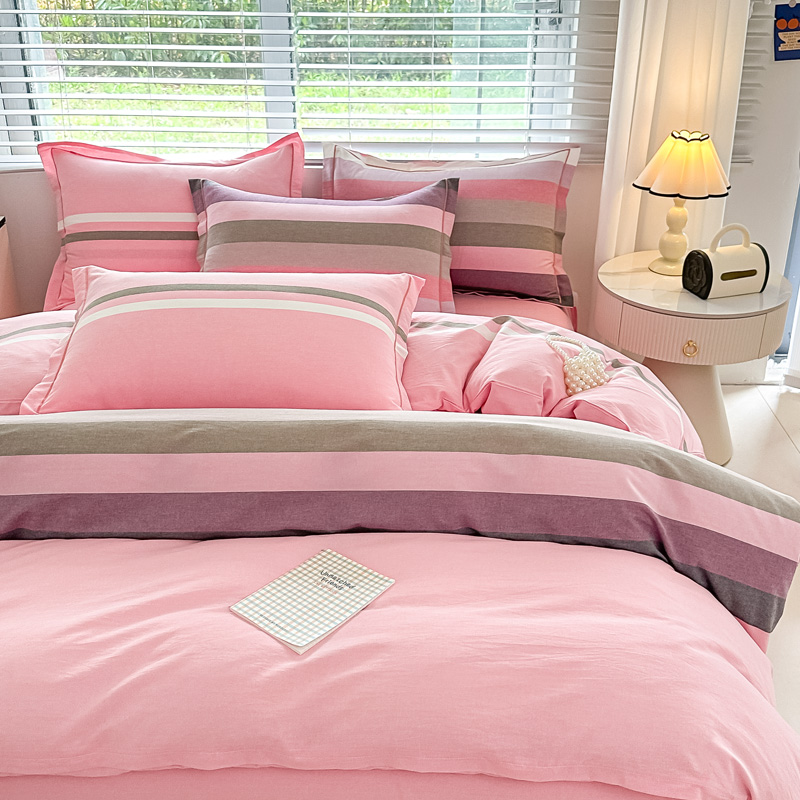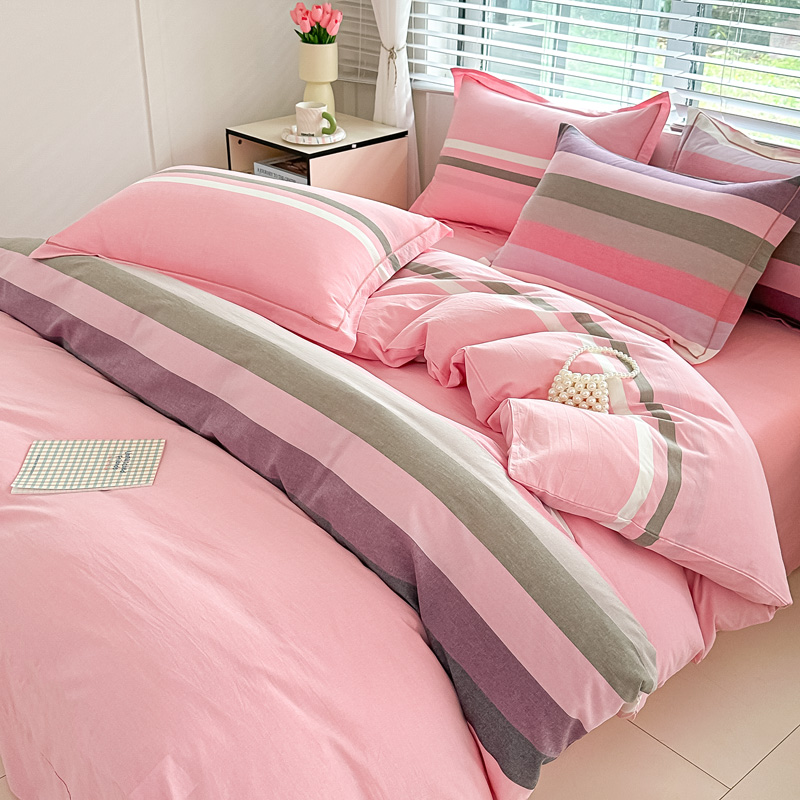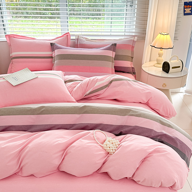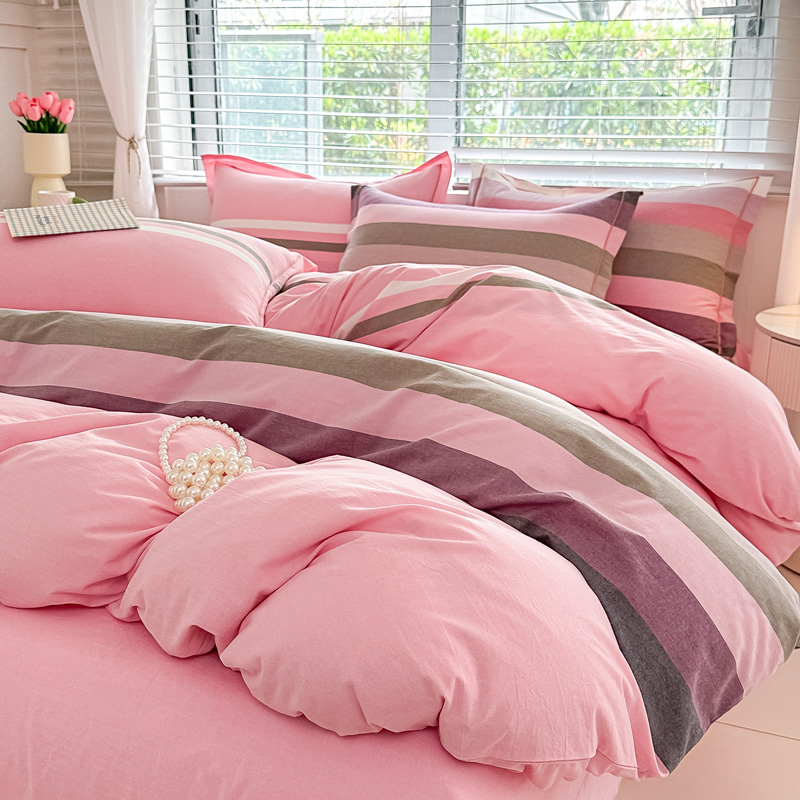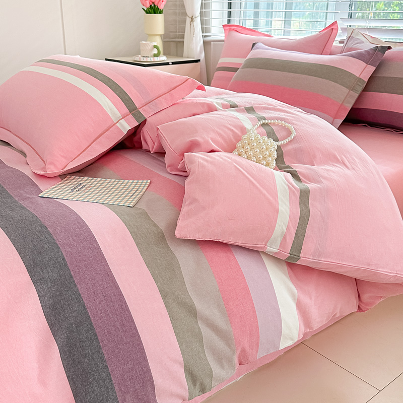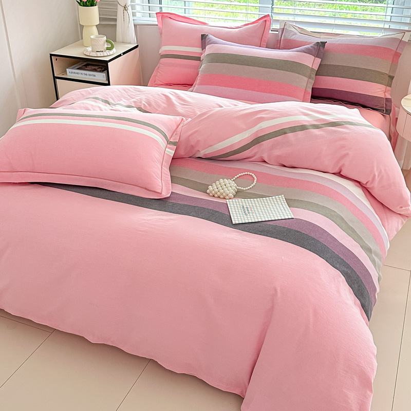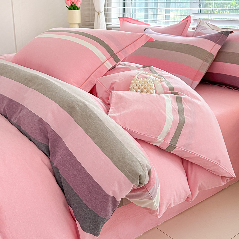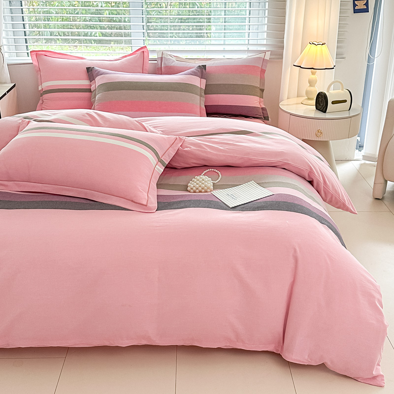 侯先生家纺 2025新款全棉色织四件套纯棉被套床单四季款格子三件套 桔粉小格,桔粉小格