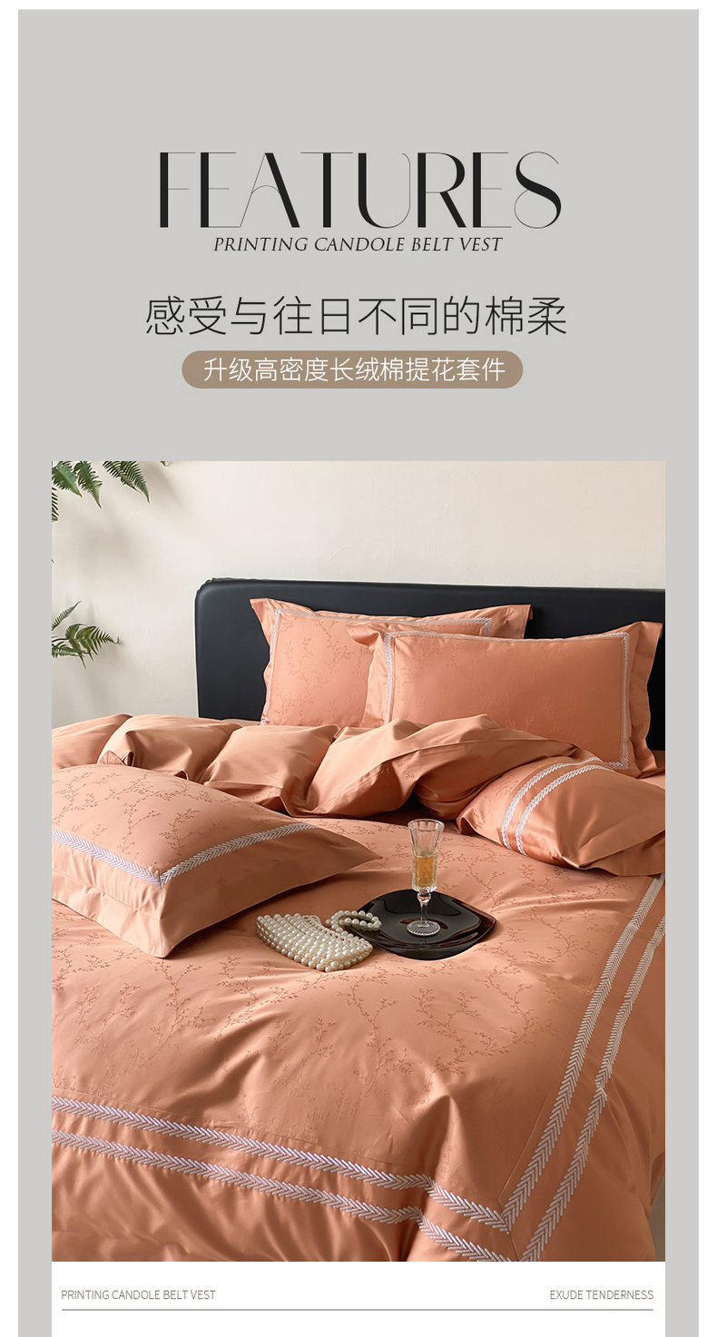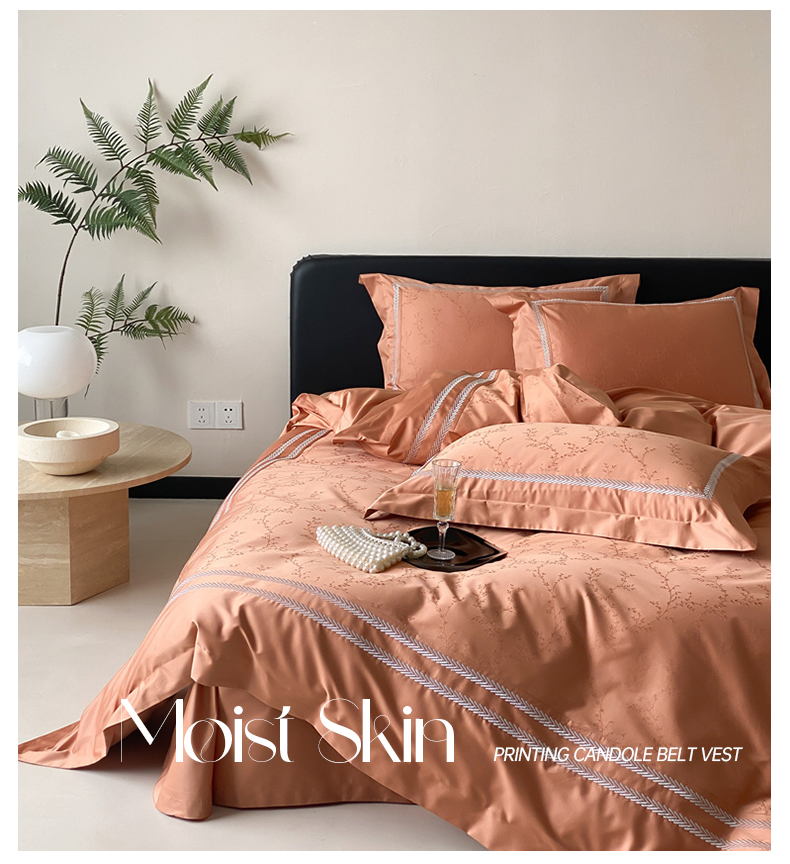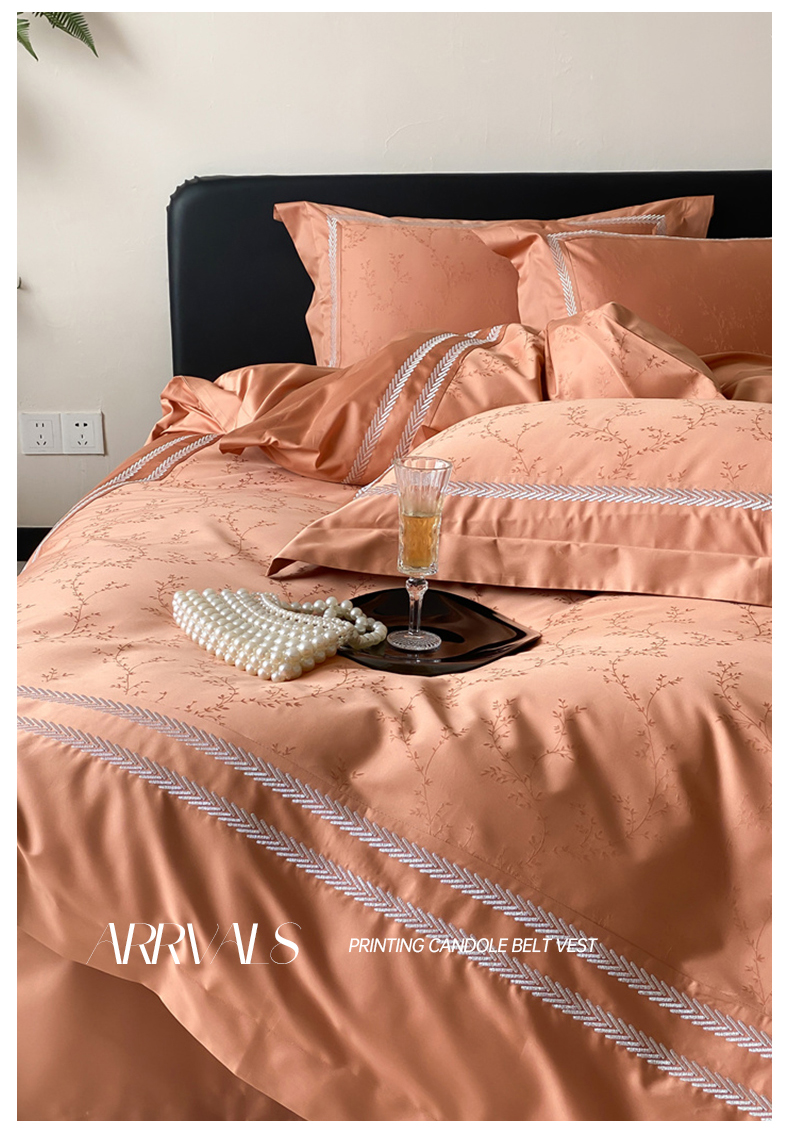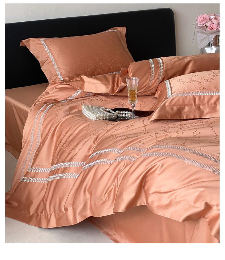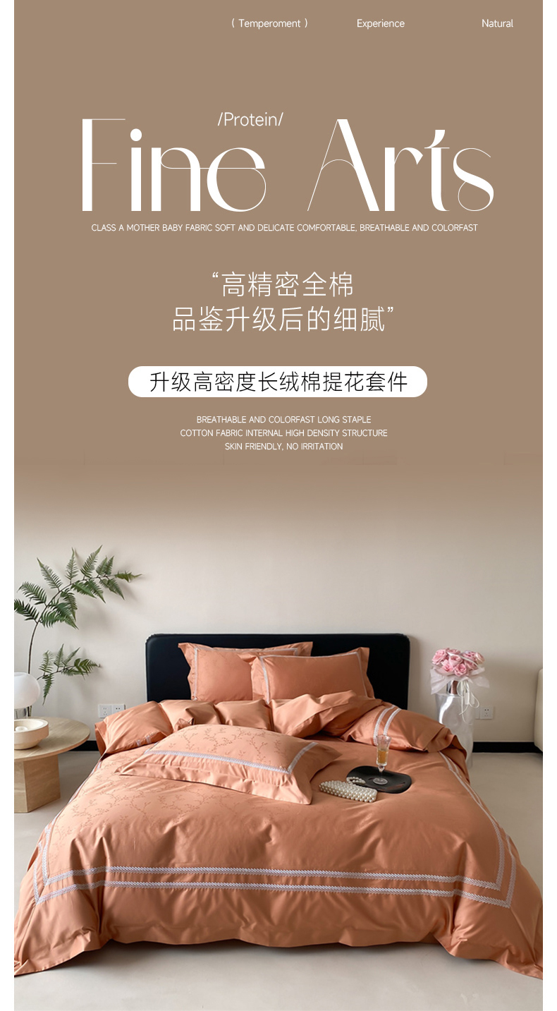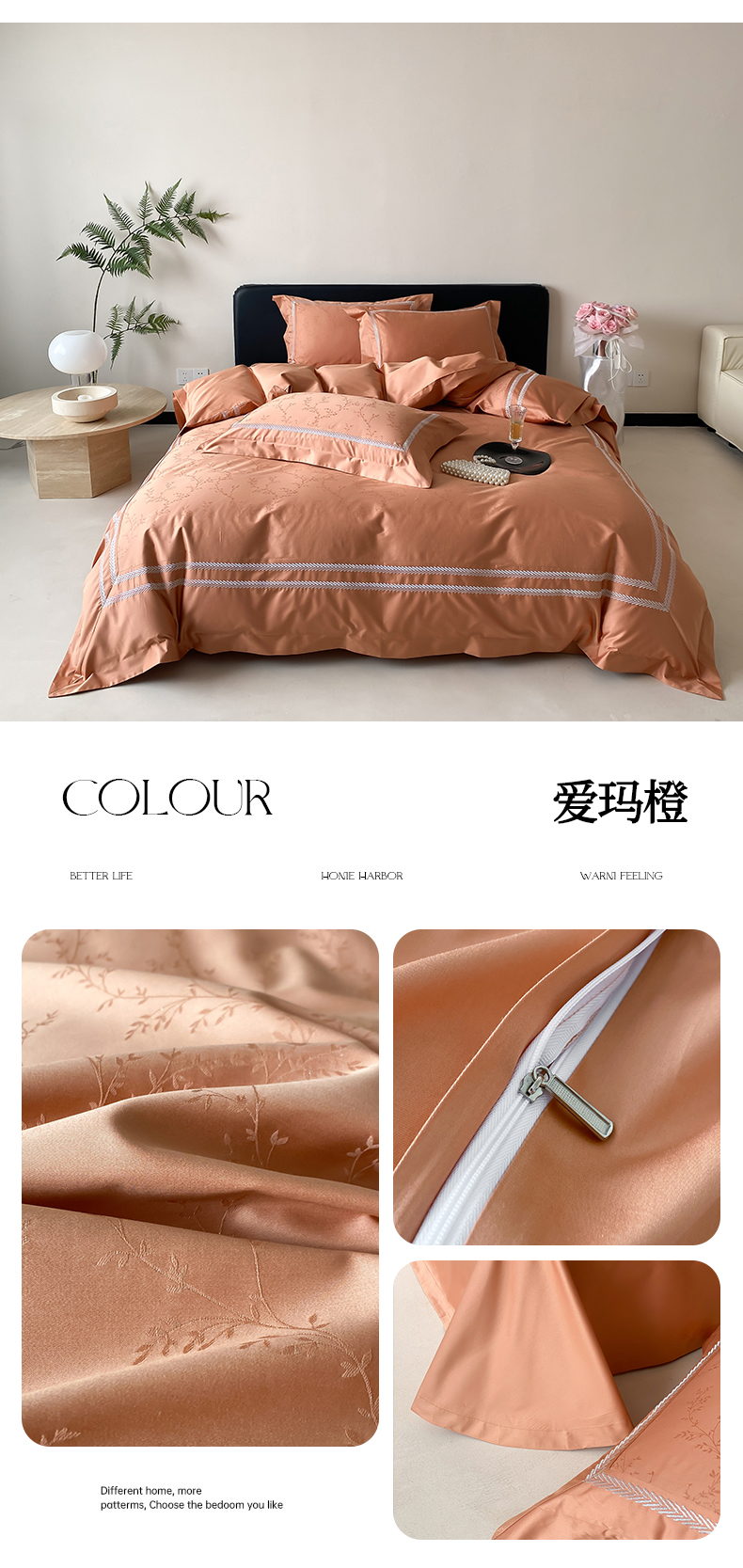 商品名称:品家居 2025新款100支高精密长绒棉四件套-岁月静好 爱玛橙