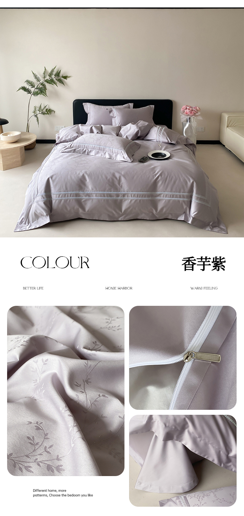 (总)品家居 2025新款180支长绒棉四件套可可系列,可可-粉,可可-蓝,可可-紫