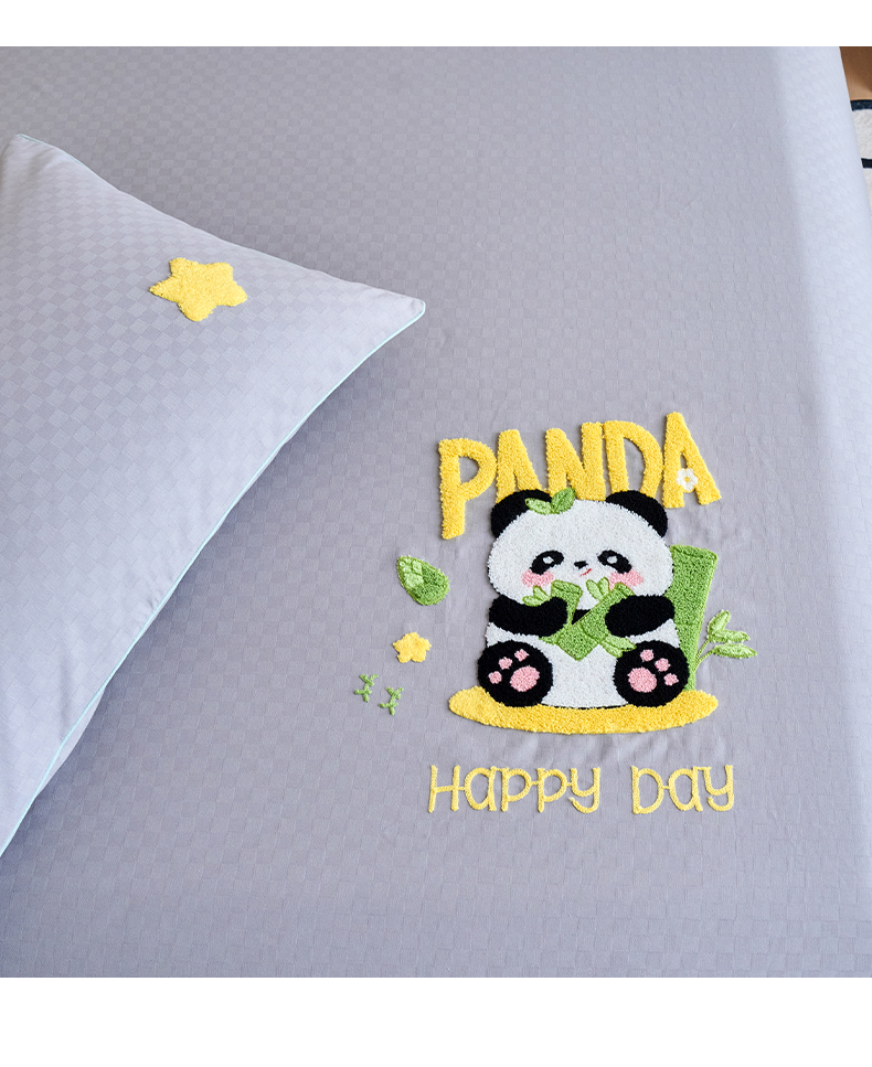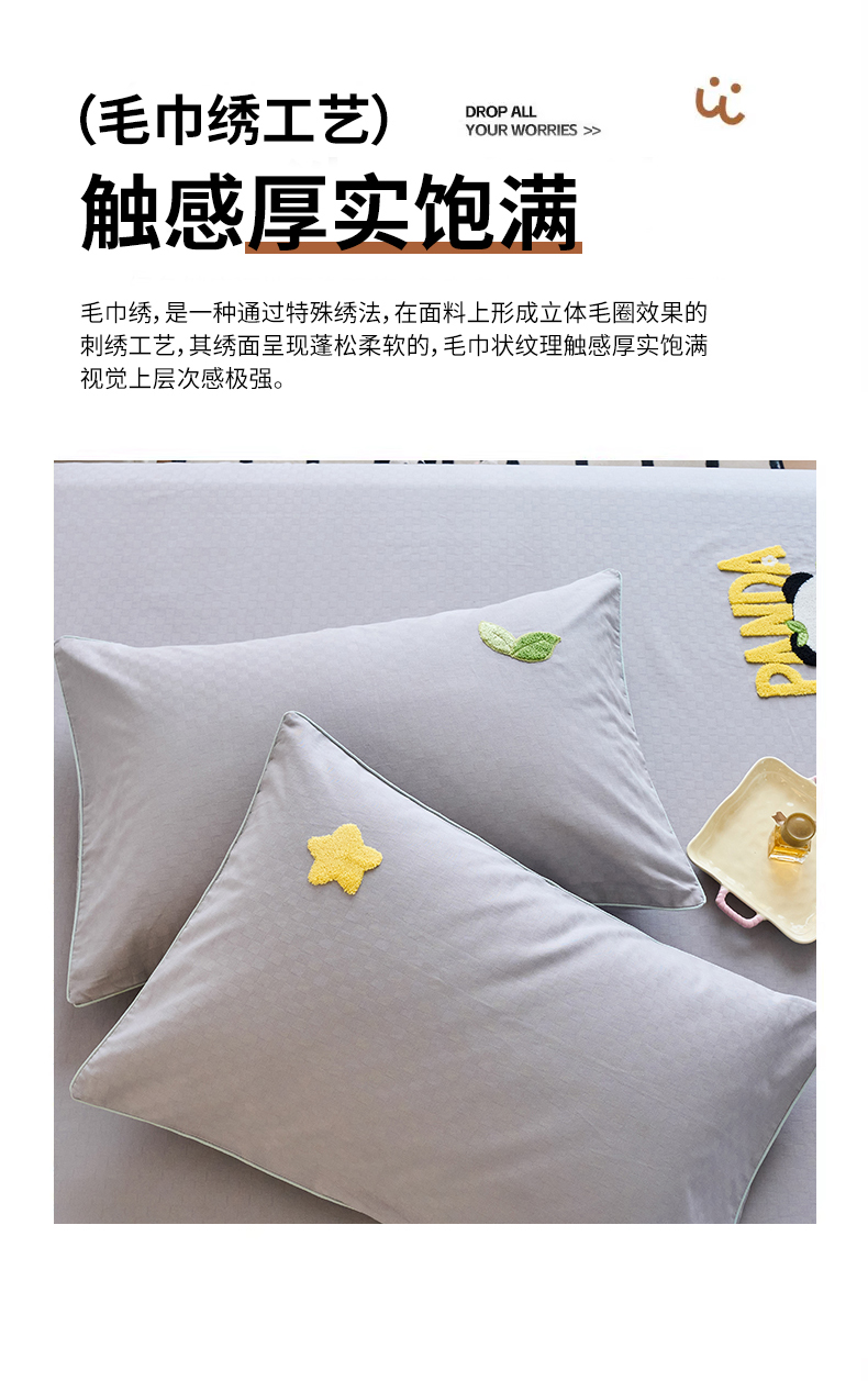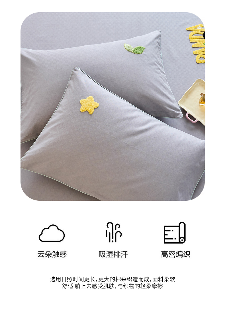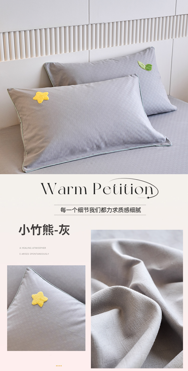 商品名称:春皖家纺 2025新款全棉纯棉提花粗布毛巾绣单枕套 枕套单件-风格二 小竹熊-灰