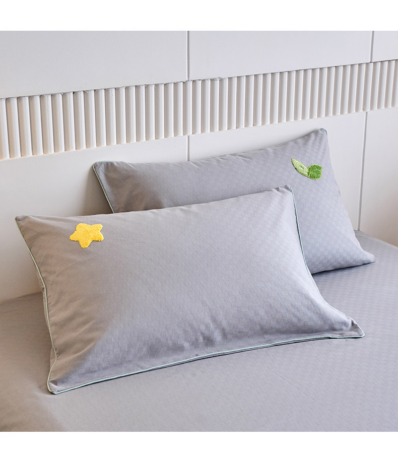 (总)2024新款竹纤维绣花床单凉席风格二枕套,流星蓝,浅藕粉,淡雅绿,苍岭绿,雅岩灰,霞光紫
