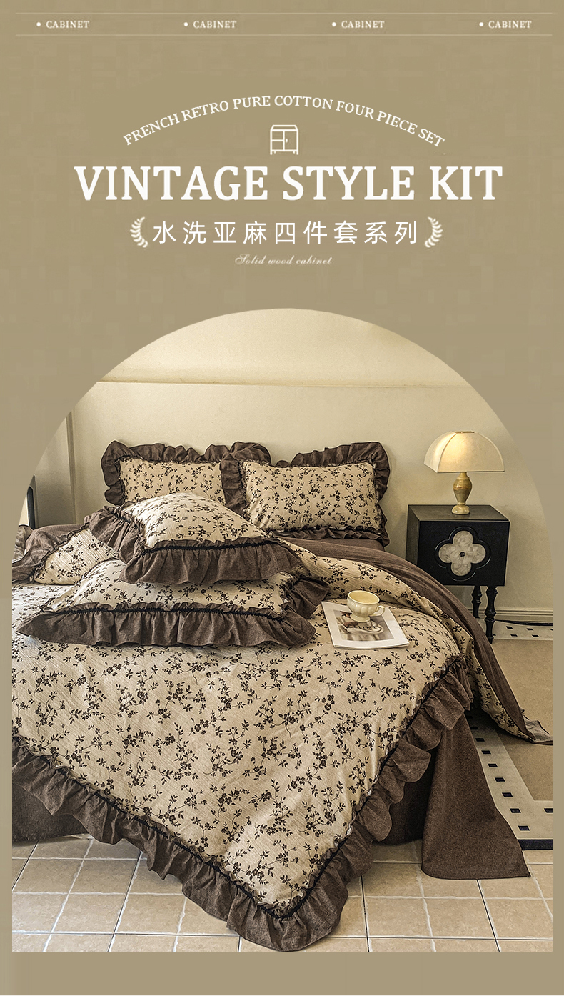 仟网汇 2025新款复古风亚麻原麻花边四件套 绿野仙踪