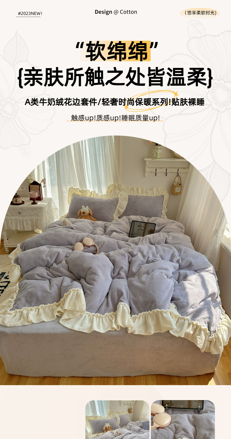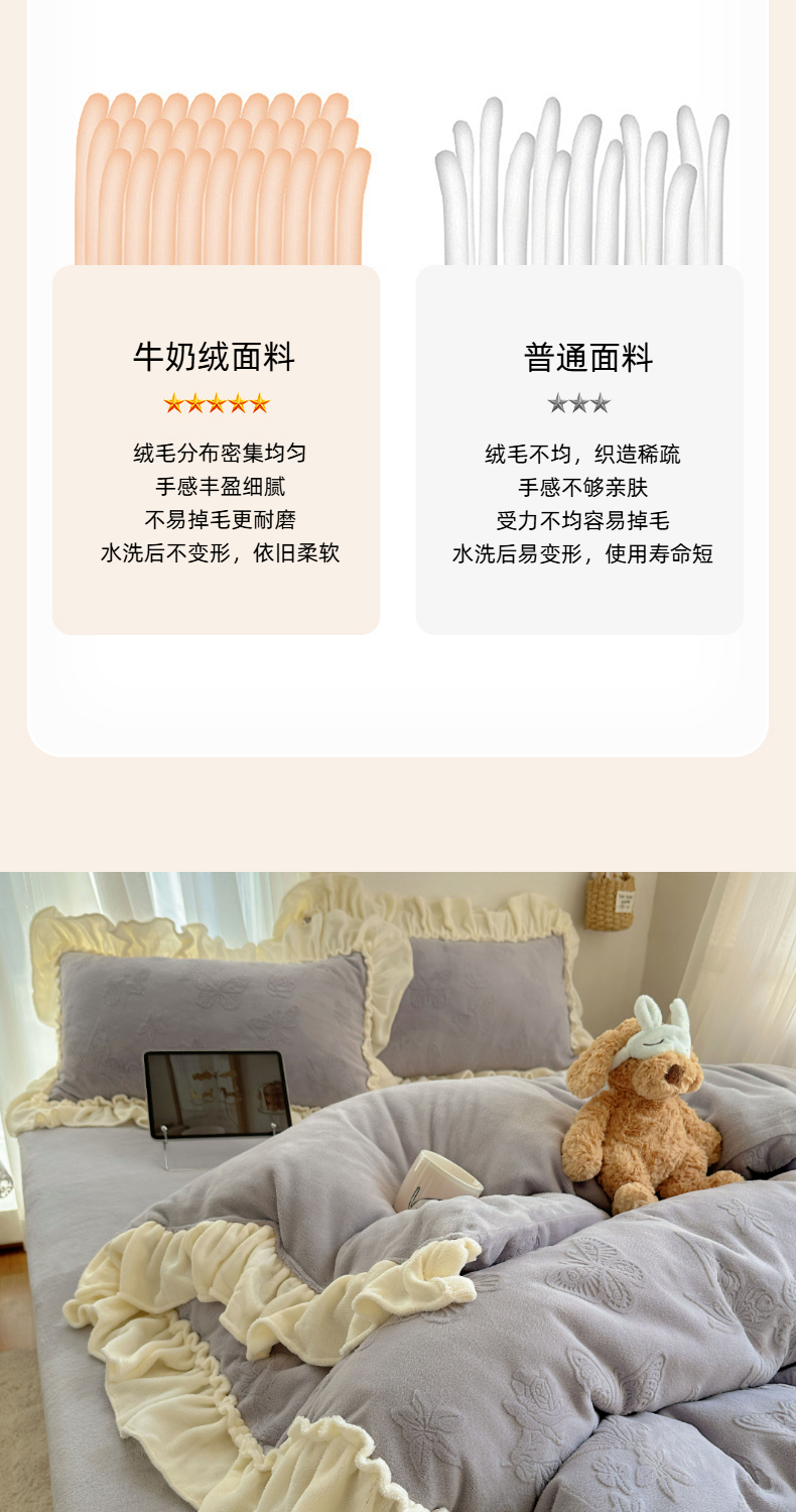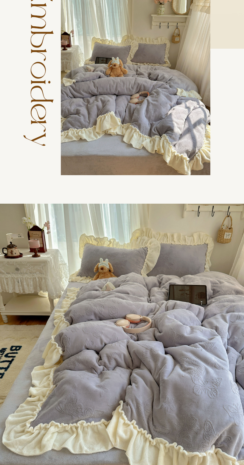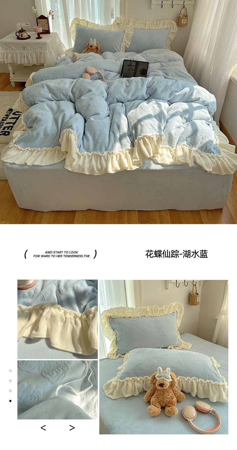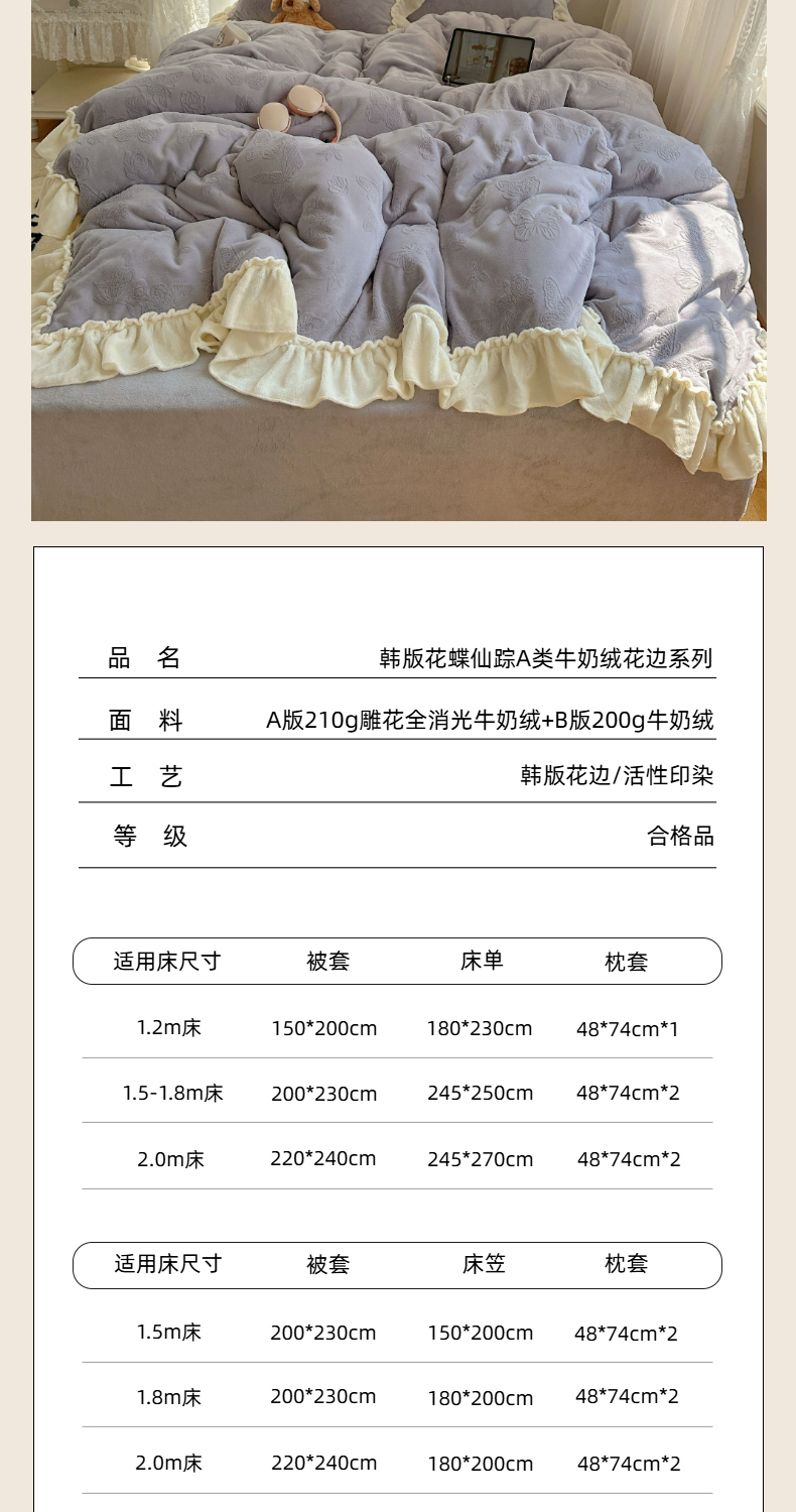 当前位置: 91家纺网 > 商品网购 > 床品套件 > 四件套 > 牛奶绒四件套 > 六巷胡同 2025新款韩版花蝶仙踪A类全消光牛奶绒花边四件套 花蝶仙踪-桔梗紫