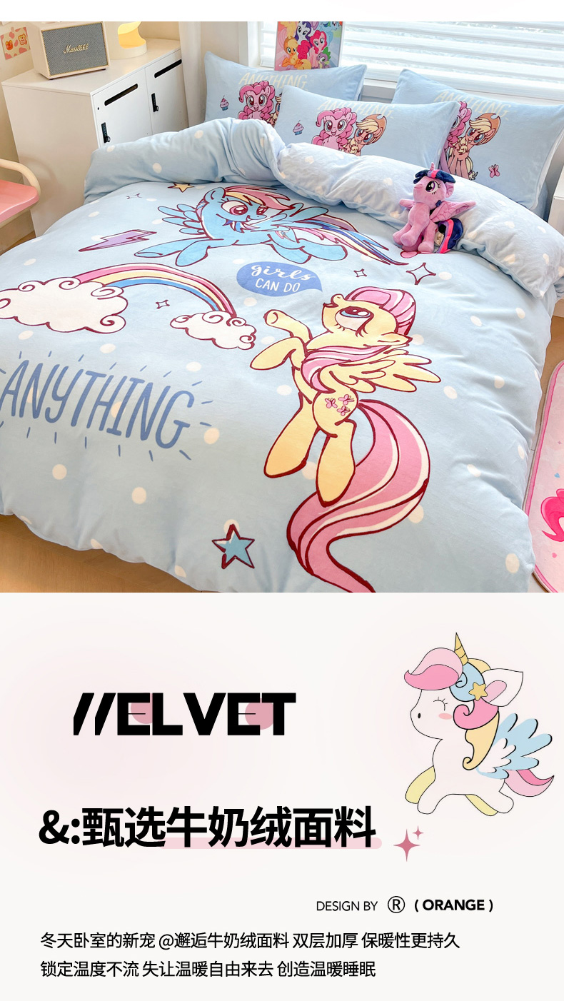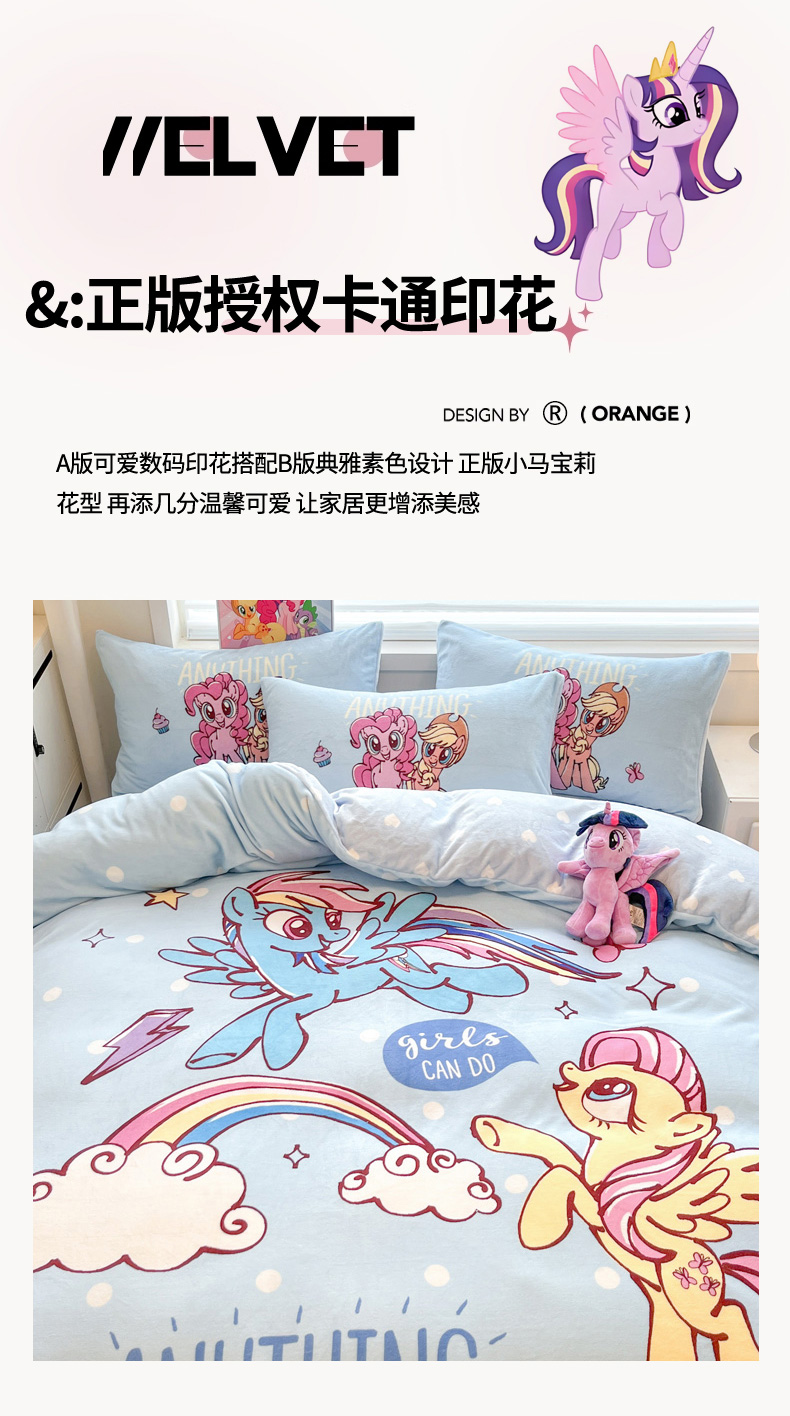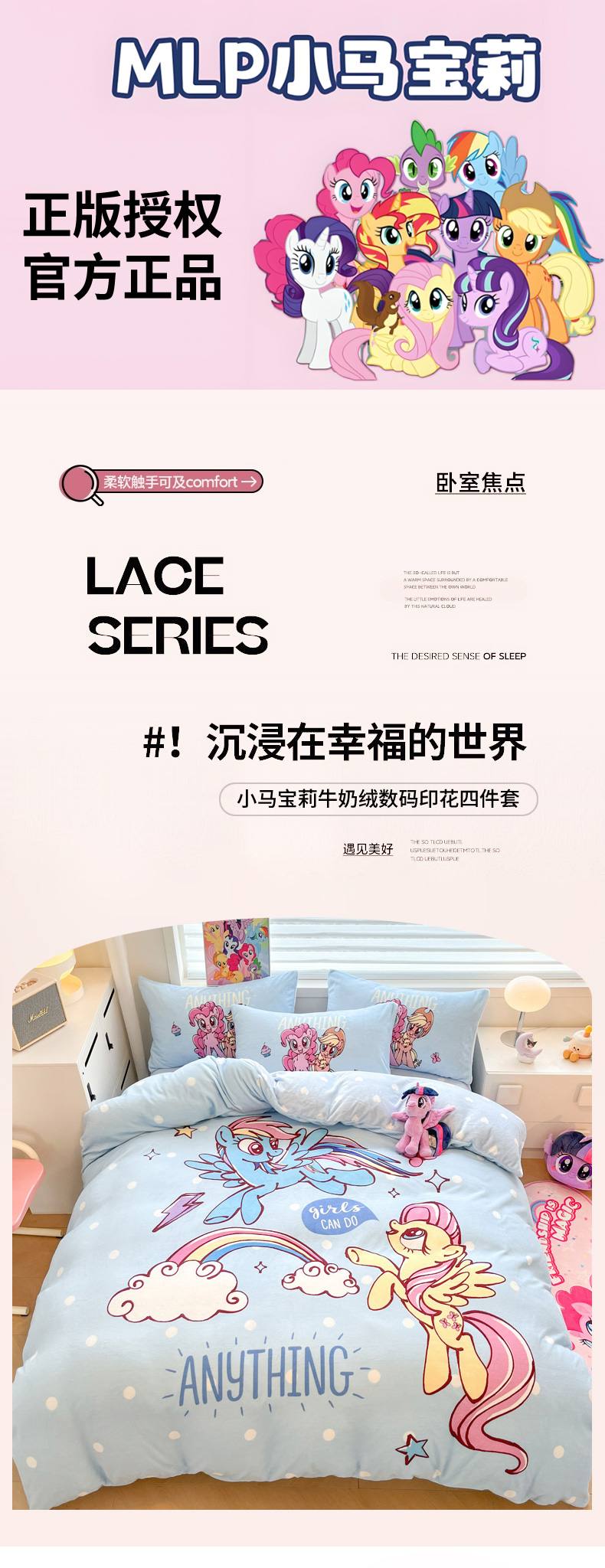 当前位置: 91家纺网 > 商品网购 > 床品套件 > 四件套 > 牛奶绒四件套 > 暮思家居 2025新款正版授权小马宝莉大阪数码印花高克重加厚保暖牛奶绒四件套 绒大版-魔力宝莉