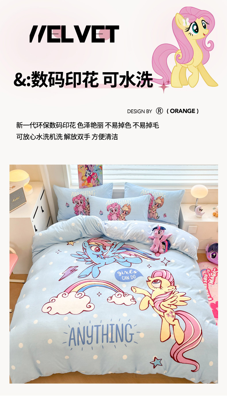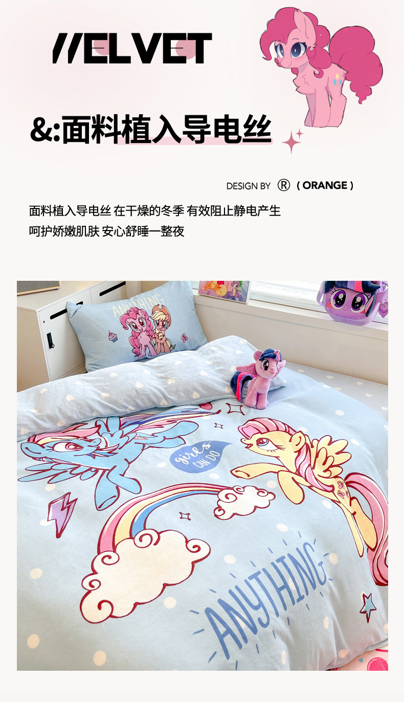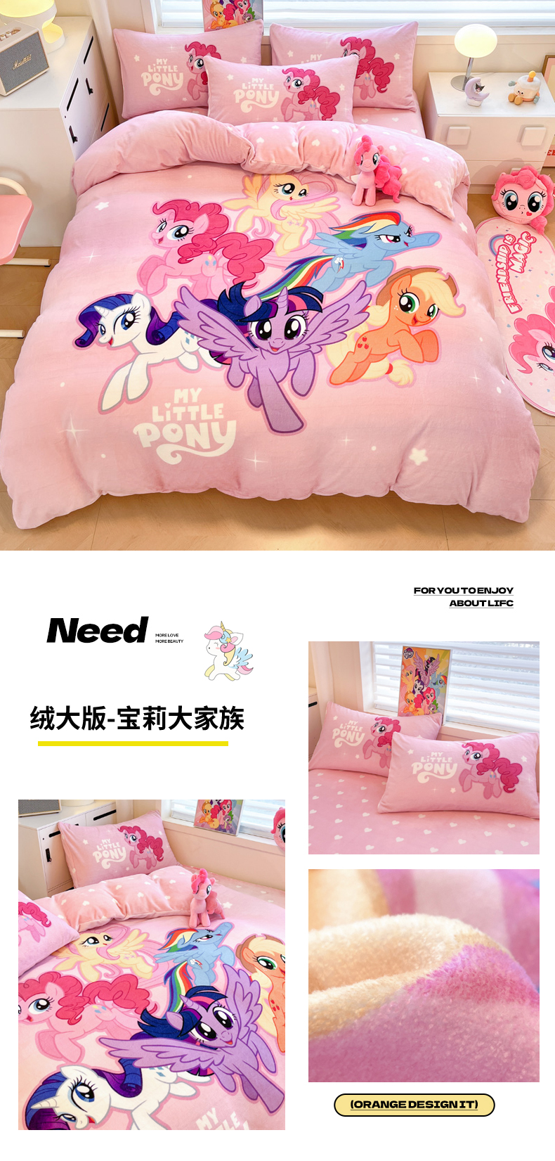 当前位置: 91家纺网 > 商品网购 > 床品套件 > 四件套 > 牛奶绒四件套 > 暮思家居 2025新款正版授权小马宝莉大阪数码印花高克重加厚保暖牛奶绒四件套 绒大版-魔力宝莉