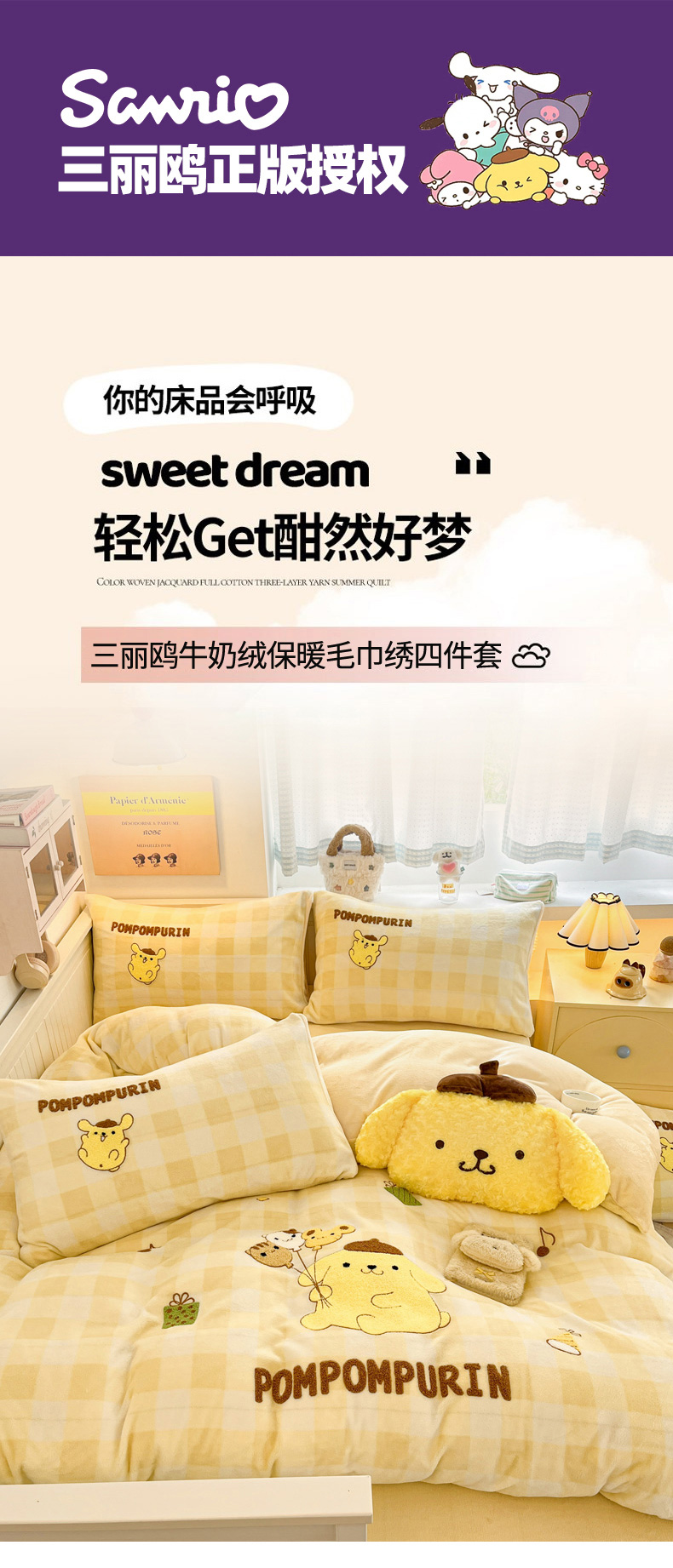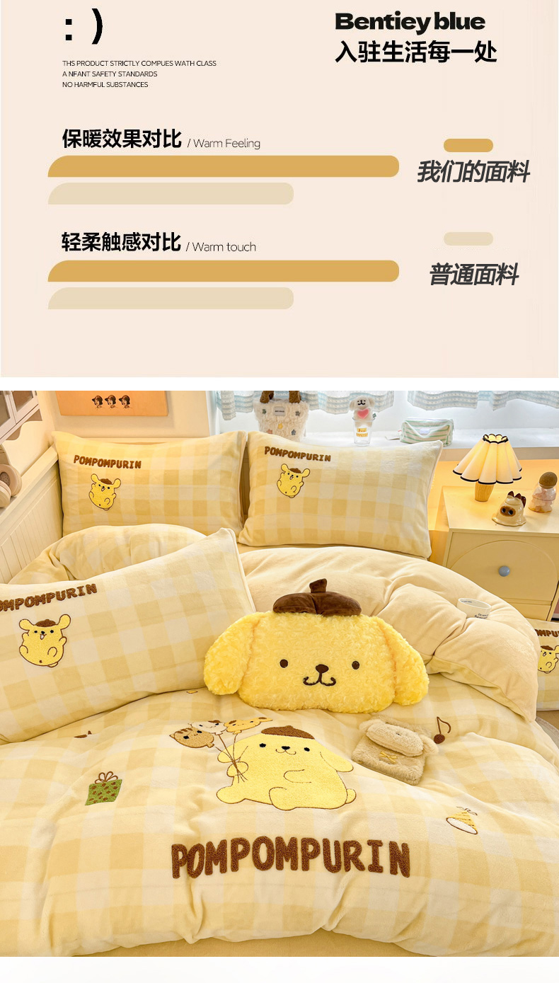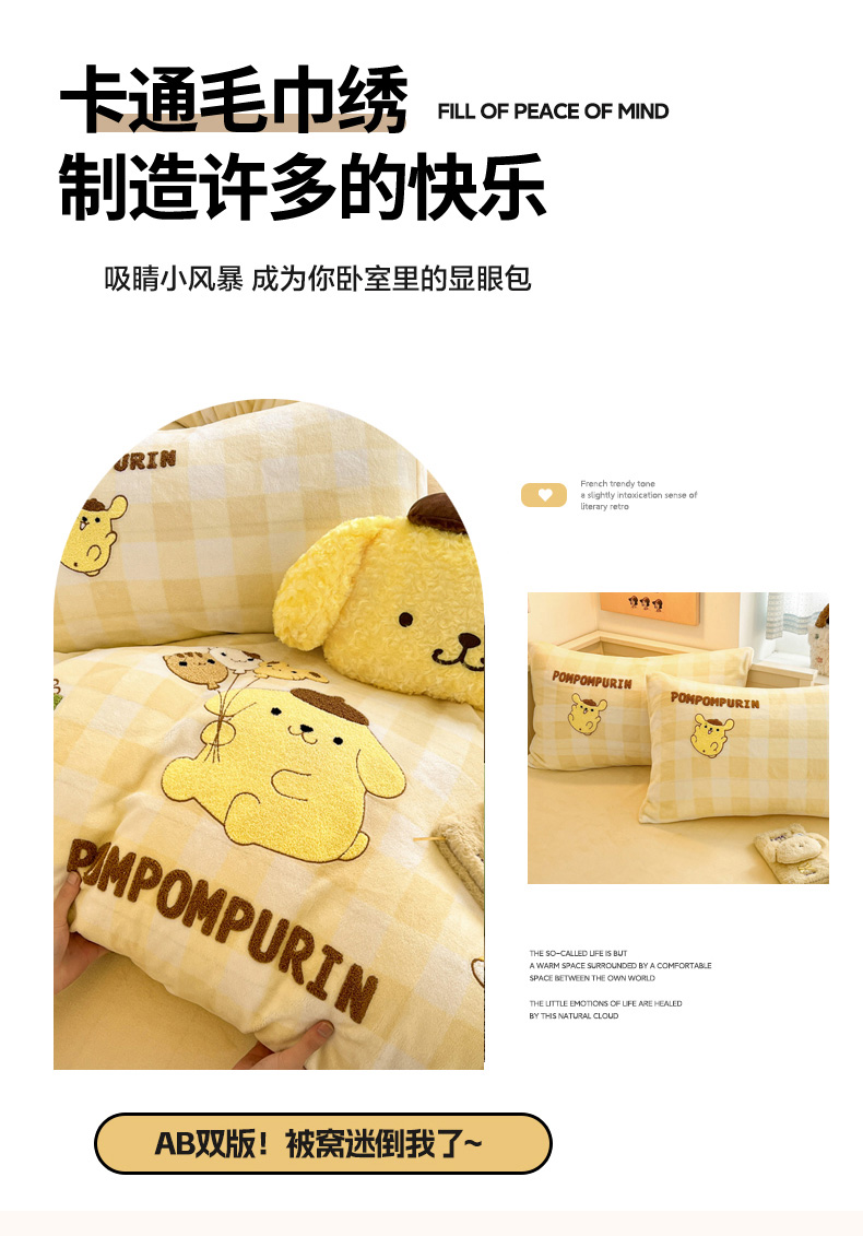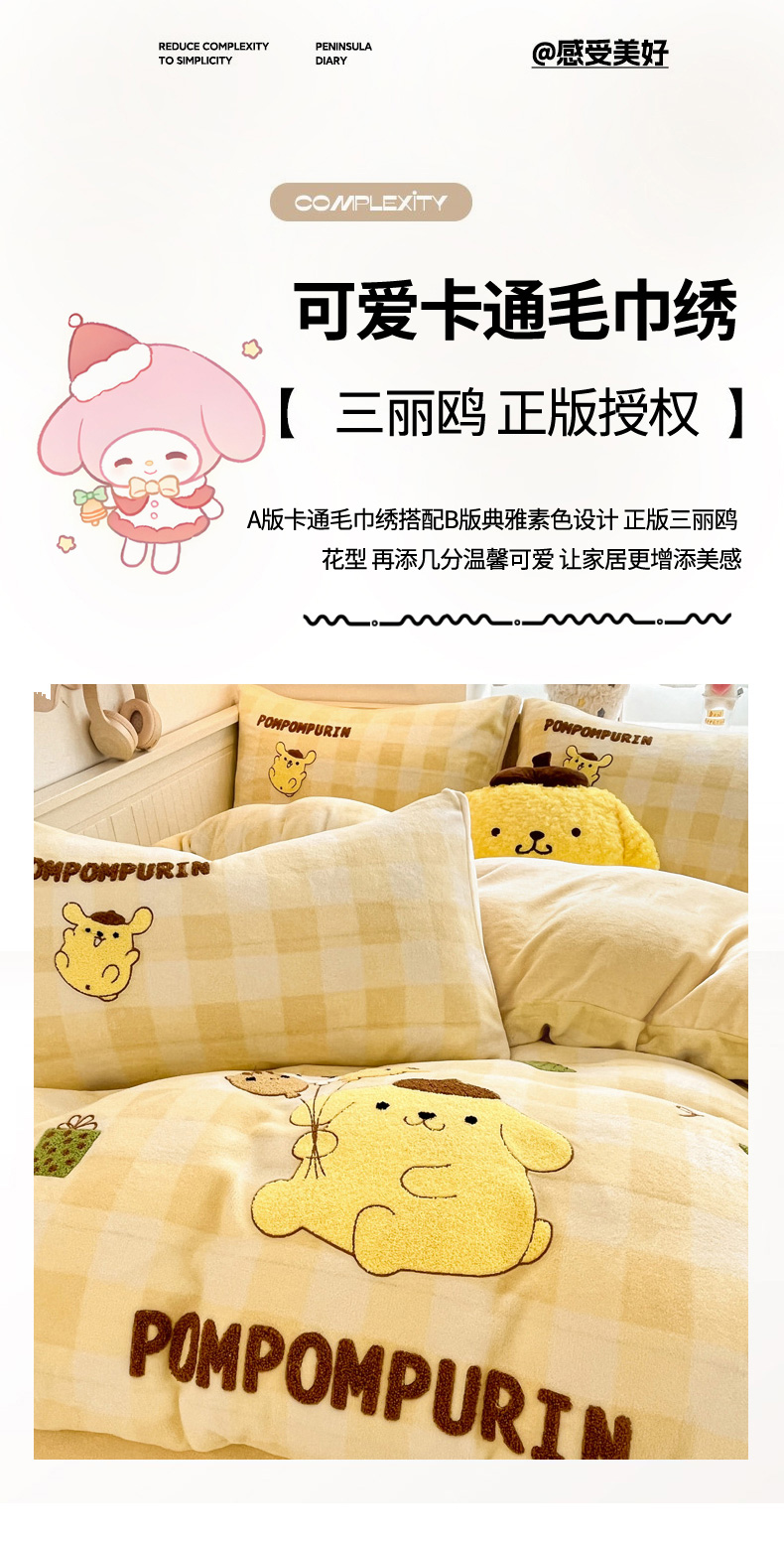 当前位置: 91家纺网 > 商品网购 > 床品套件 > 四件套 > 牛奶绒四件套 > 暮思家居 2025新款正版授权高端毛巾绣绣花牛奶绒三丽鸥四件套 毛巾绣-布丁狗
