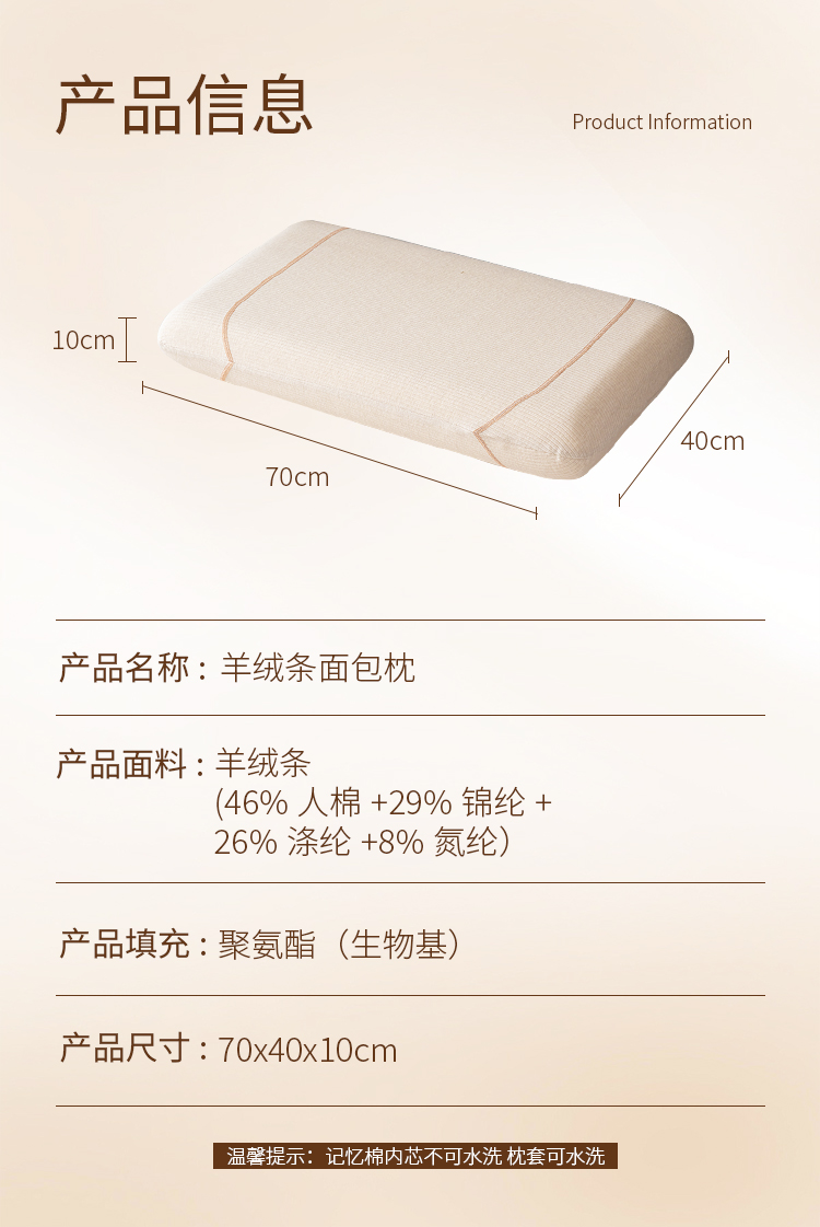 当前位置: 91家纺网 > 商品网购 > 枕头/枕芯/保健枕/颈椎枕 > 枕头枕芯 > (总)帛茗轩家居 2025新款羊绒条面包枕