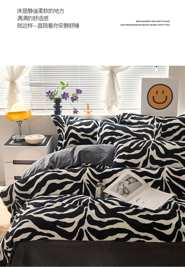 (总)仟网汇 2025新款兔毛绒印花四件套,斑马纹,可爱多,马格丽,魔法学院红,魔法学院蓝,晚秋,小淘气,英伦时尚
