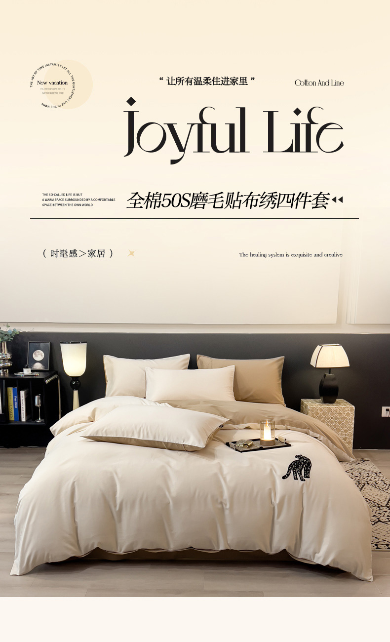 (总)印季家纺 2025新款全棉50s磨毛绣花-黑豹四件套,奶玉-浅驼,夹心粉-奶玉,咖灰-天青,浅驼-玛卡粉,悠悠紫-空气灰
