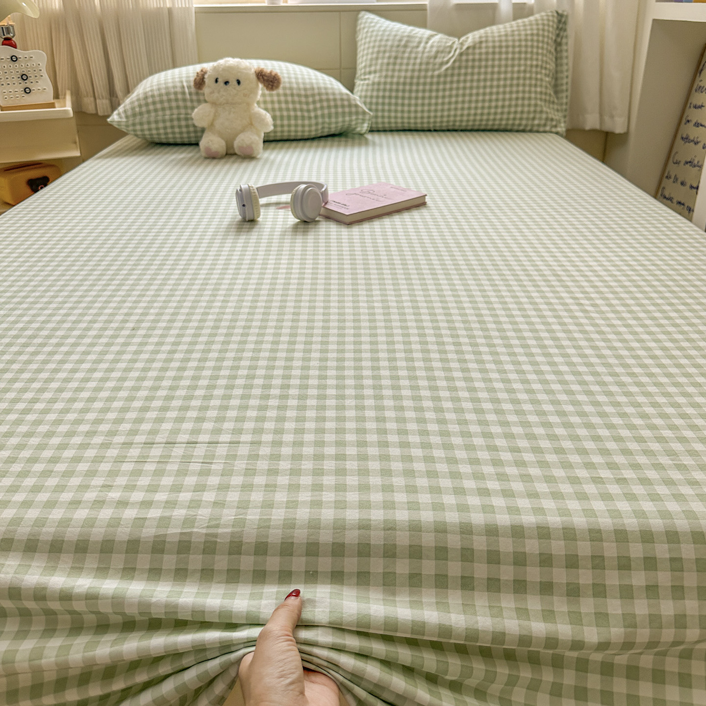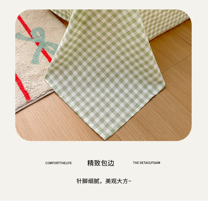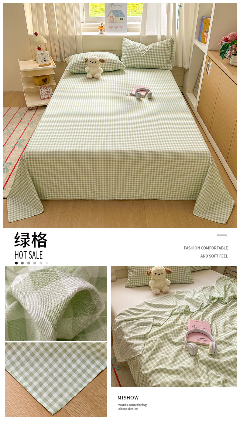 商品名称:冕悠家纺 2025新款A类加厚水洗棉格子点点印花超柔单品床单枕套 绿格