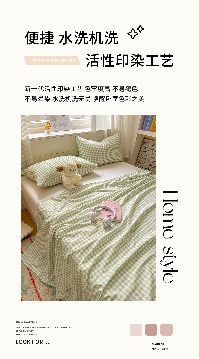 (总)冕悠家纺 2025新款A类加厚水洗棉格子点点印花超柔单品床单枕套,组合图,粉格,蓝点,蓝格,绿格,米点,紫点,紫格