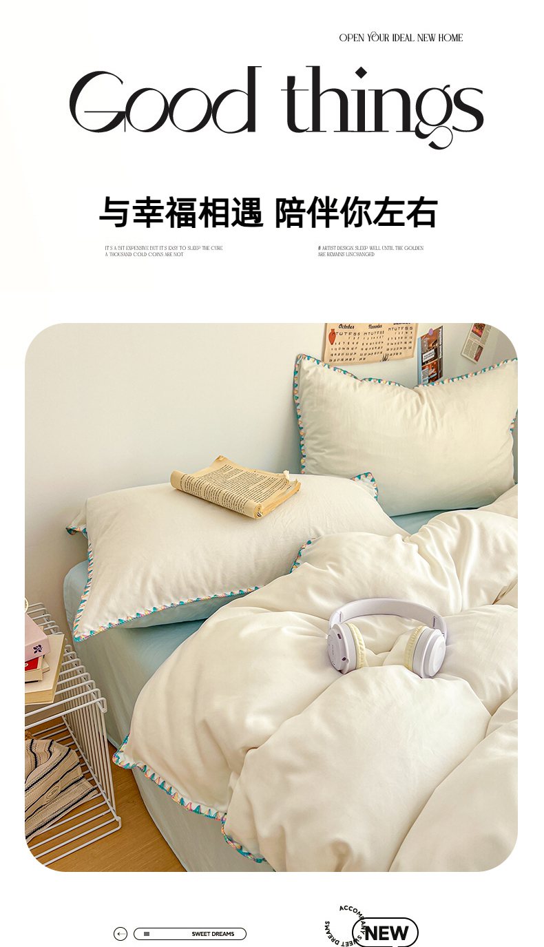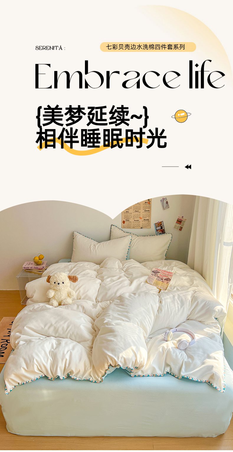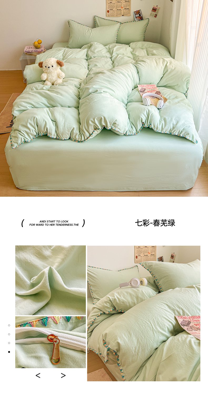 当前位置: 91家纺网 > 商品网购 > 床品套件 > 四件套 > 水洗棉四件套 > 冕悠家纺 2025新款A类七彩贝壳边水洗棉四件套-加微信提供买家秀2 七彩-春芜绿奶白