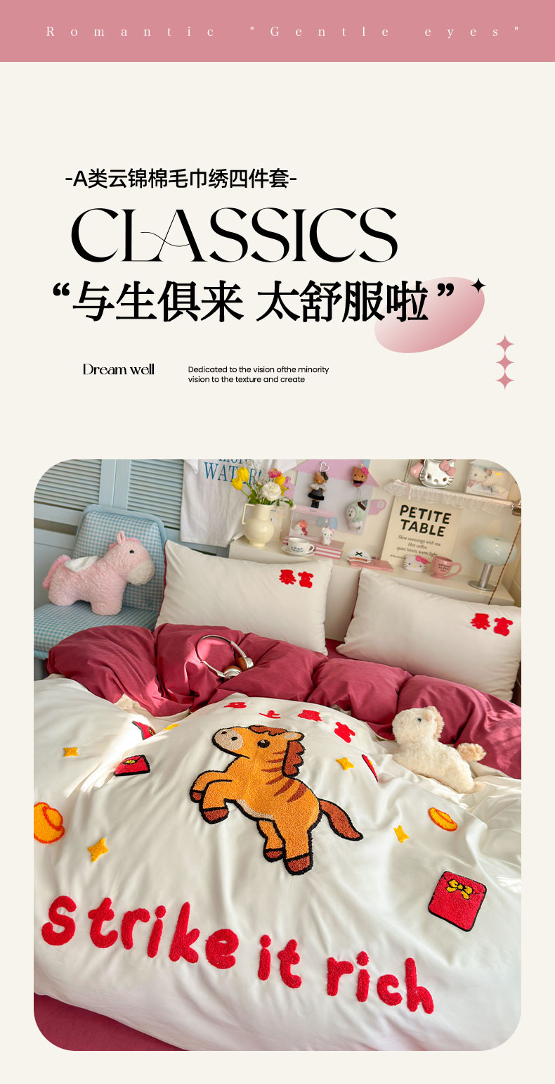 当前位置: 91家纺网 > 商品网购 > 床品套件 > 四件套 > 其它四件套 > 优卡迪家纺馆 2026新款A类云锦棉毛巾绣四件套下载文件包含买家秀 马上暴富-白