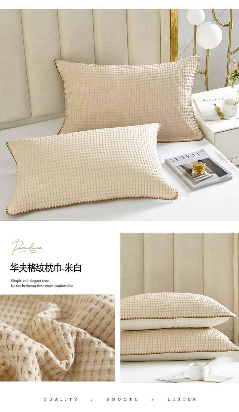 当前位置: 91家纺网 > 商品网购 > 床上用品 > 枕巾垫巾 > 朴尔家纺-毛巾被 2026新款全棉纯棉纱布华夫格素色枕巾系列 华夫格纹枕巾-米白