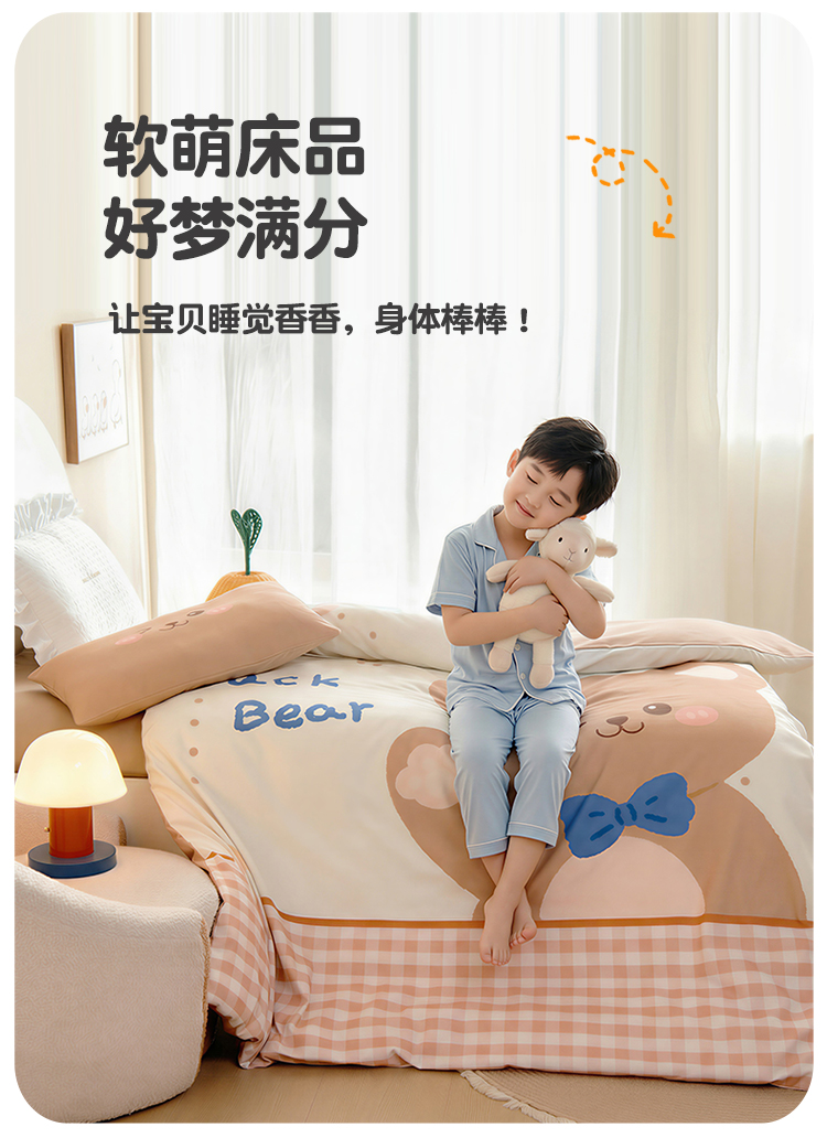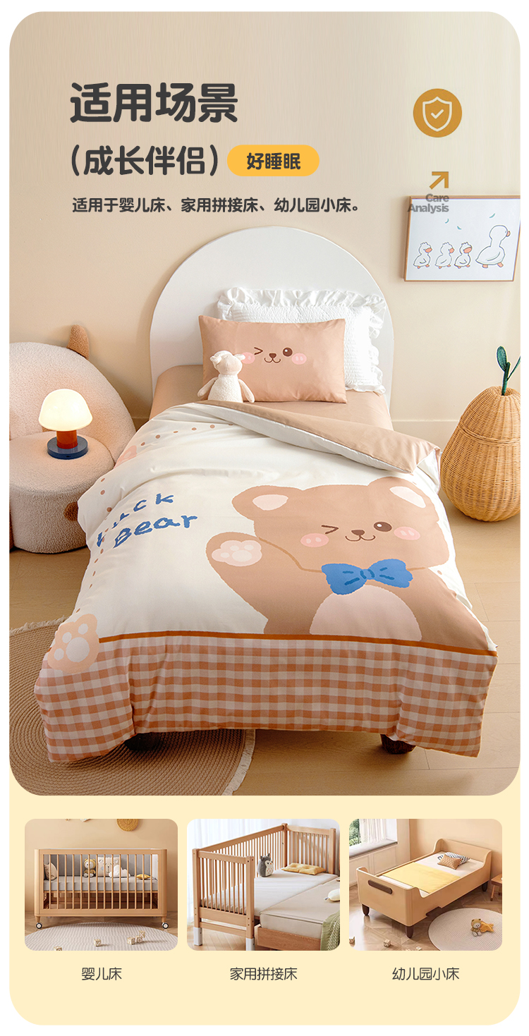 绒梦里 2026新款A类全棉卡通大版数码印花幼儿园被子三件套儿童套件被套,熊猫宝贝,波点企鹅,嘟嘟小车,粉萌小兔,快乐芝士,奶茶兔兔,平安小马,俏皮恐龙,幸运树,幸运小熊,紫色小兔,足球宝贝