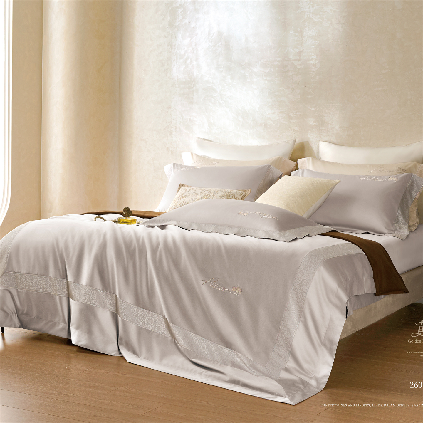 (总)玖玖爱家纺 2026新款80支贡缎奢织黄金长绒棉四件套-云梦泽