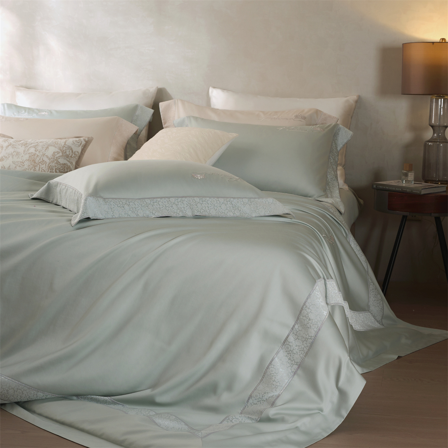 (总)玖玖爱家纺 2025秋冬新品植物甄丝3星系列奢选新疆阿瓦提长绒棉四件套,栖岚玛瑙绿,栖岚摩卡棕,栖岚绅士灰,栖岚香芋紫,栖岚樱花粉