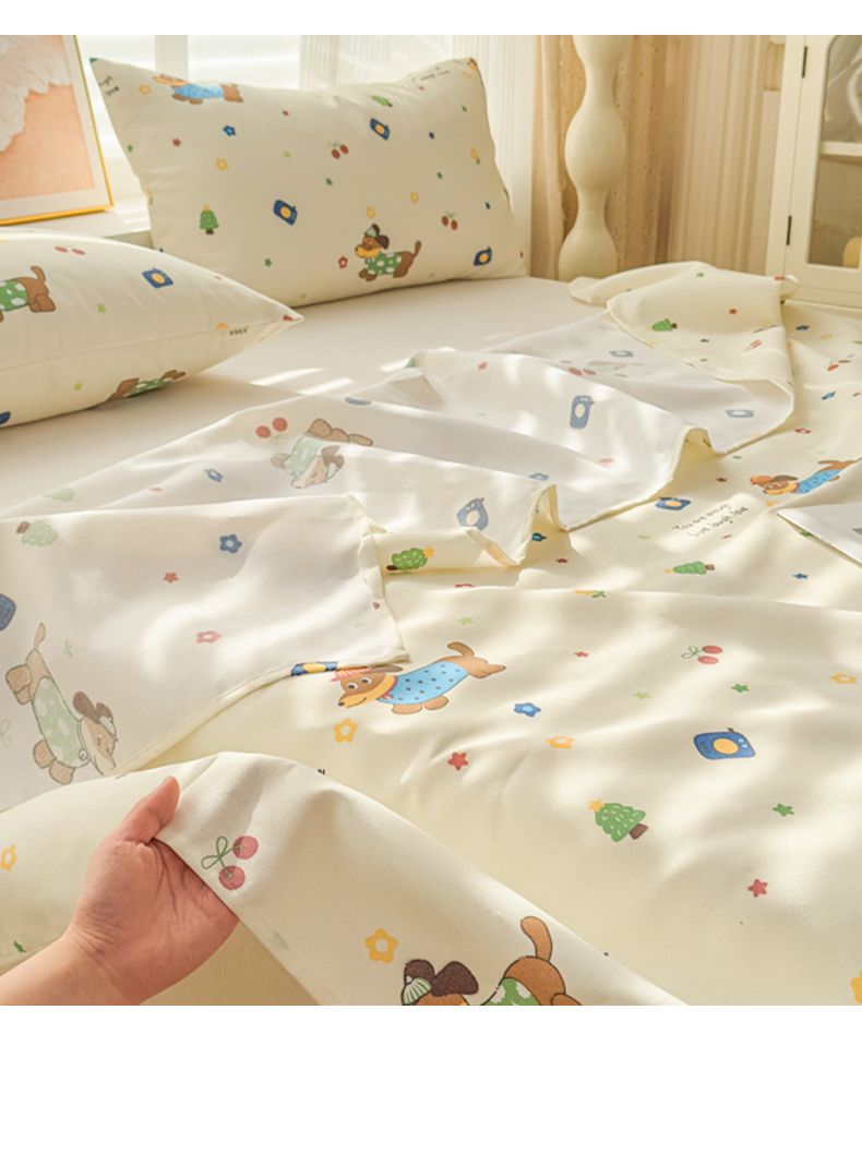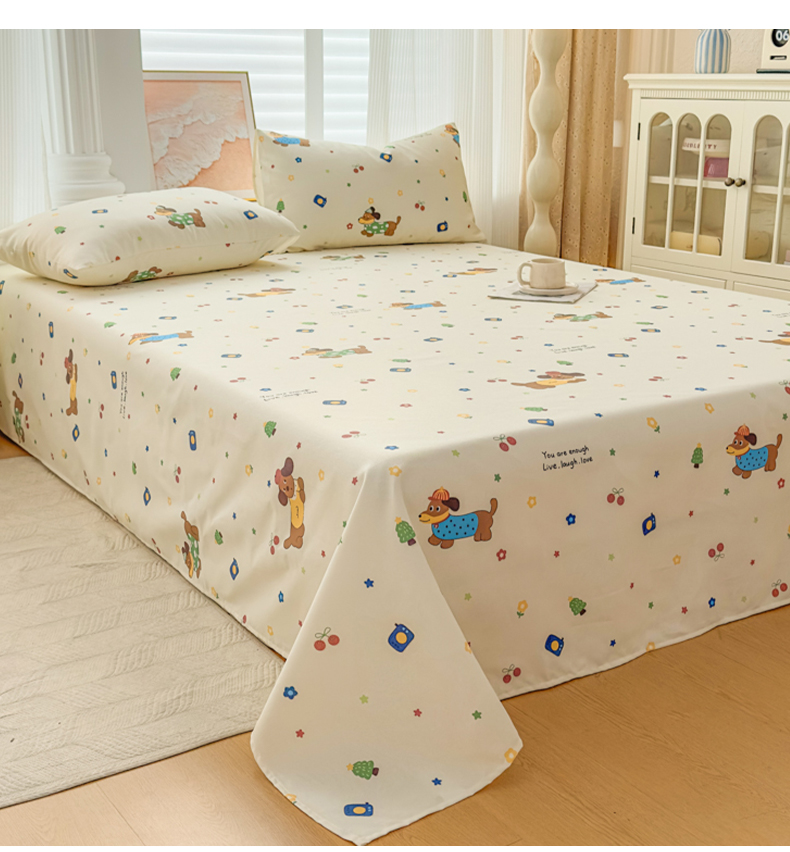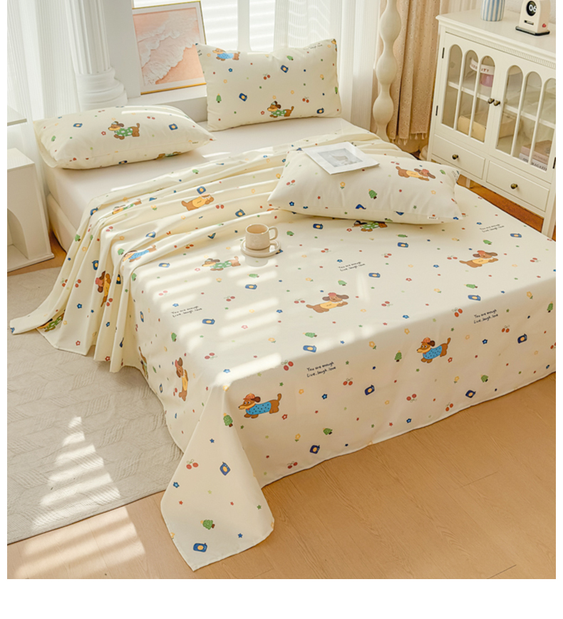 • 91家纺网 家纺一手货源 找家纺 爱彼家纺 2026夏季新款亲肤原棉老粗布透气印花床单单件热门热门床单款新升级-细沙老粗布 甜樱萌犬