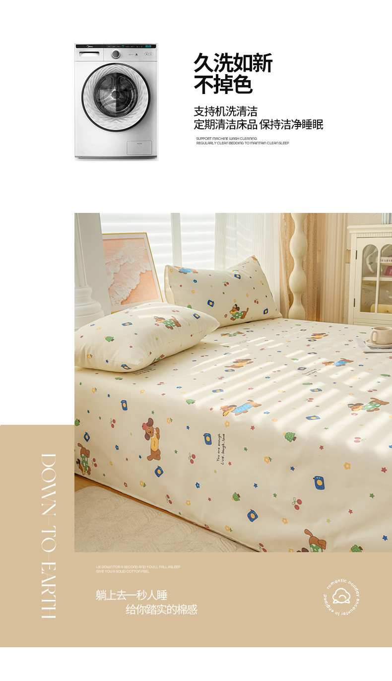 (总)爱彼家纺 2026夏季新款亲肤原棉老粗布透气印花床单单件热门热门床单款新升级-细沙老粗布,白多花园,波点蝴蝶结,纯绿,橄榄绿,花海,橘色条纹,卡其,蓝白条,蓝菊绘,绿果花香,马上发财,摩洛哥小狗,甜樱萌犬,小熊之家,星海蓝,星空灰,约定条纹,竹小熊