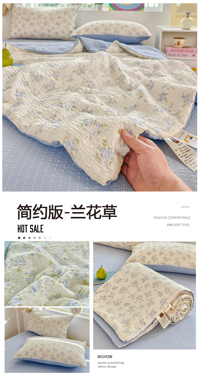 商品名称:利禾家纺 2026春夏新款泡芙纱简约夏被四件套夏凉被空调被 兰花草-简约