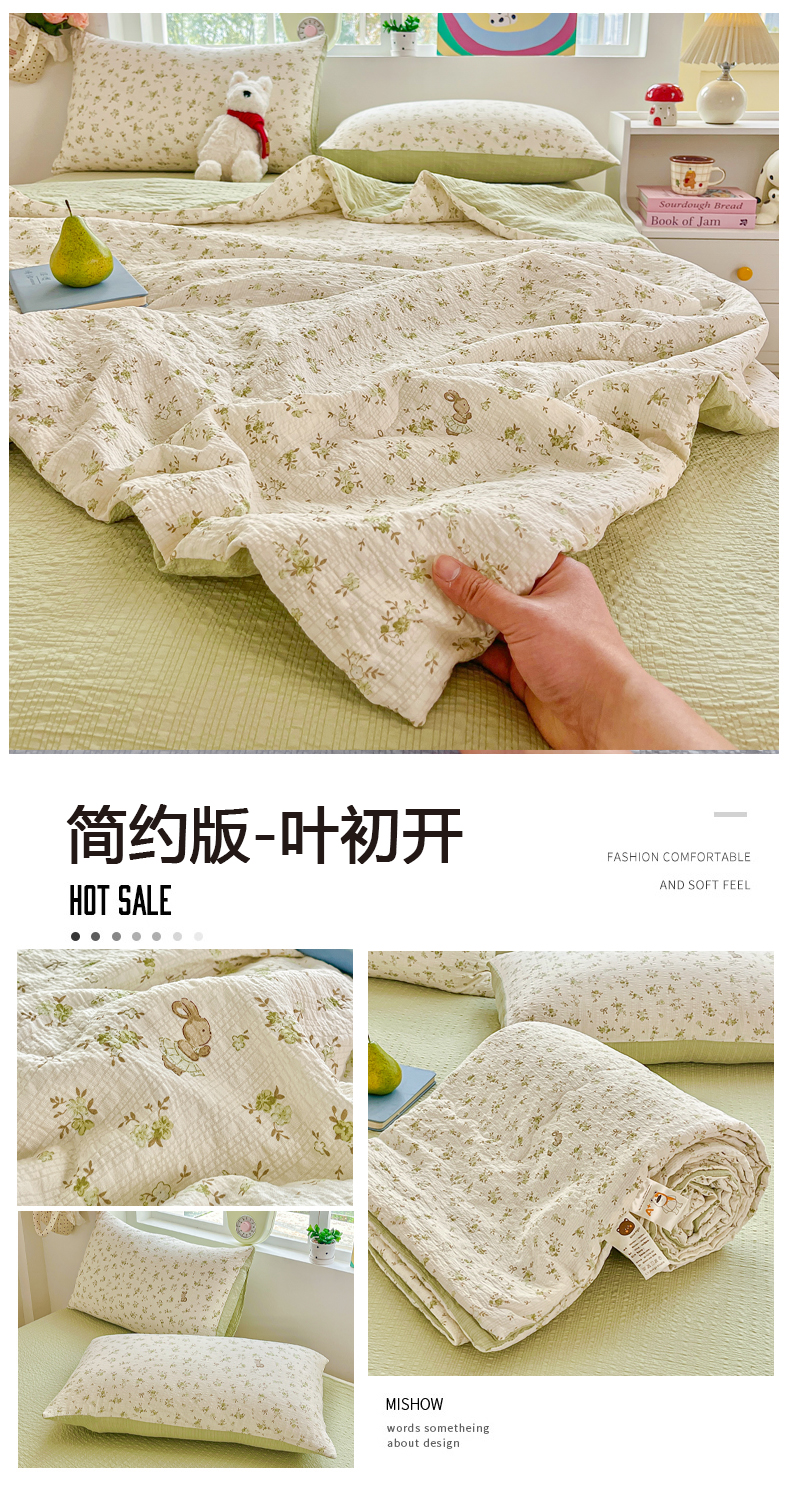 商品名称:利禾家纺 2026春夏新款泡芙纱简约夏被四件套夏凉被空调被 叶初开-简约