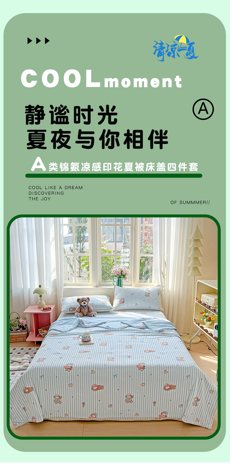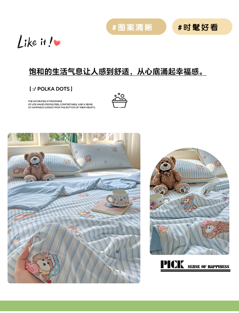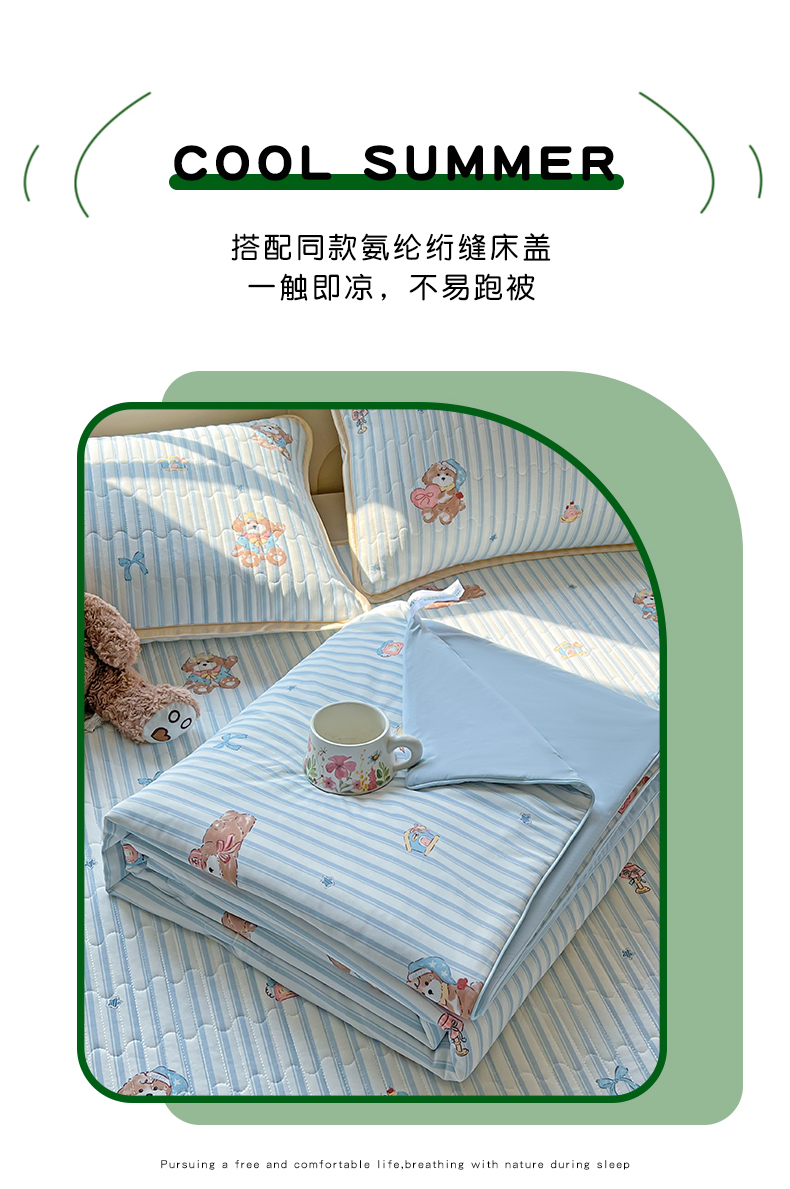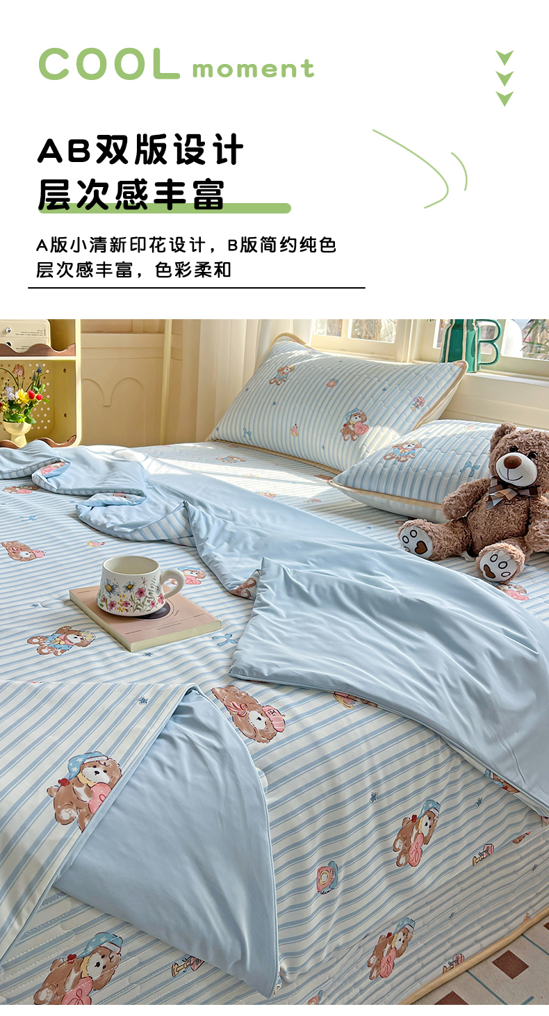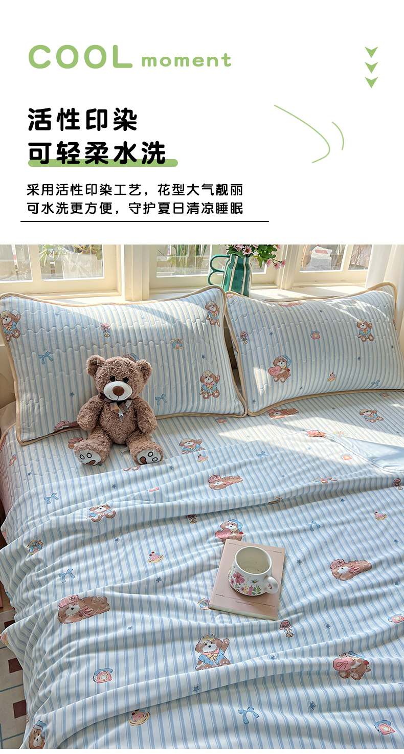 当前位置: 91家纺网 > 商品网购 > 床品套件 > 四件套 > 夏被四件套 > 卡普家居 2026新款A类锦氨凉感印花夏被床盖床单款四件套 条纹熊