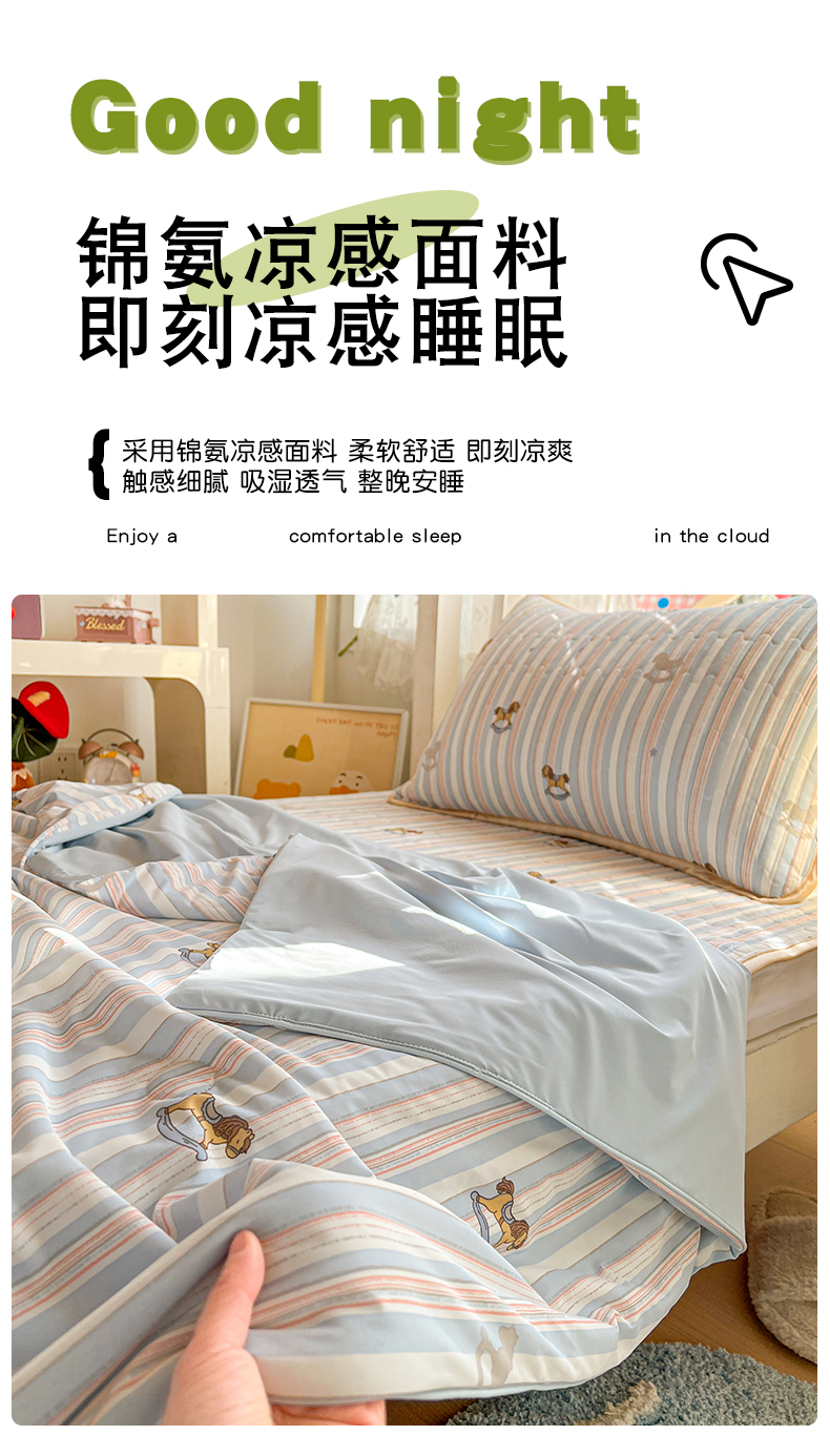 当前位置: 91家纺网 > 商品网购 > 床品套件 > 三件套 > 卡普家居 2026新款A类锦氨凉感印花夏被床盖床单款三件套 木马童话