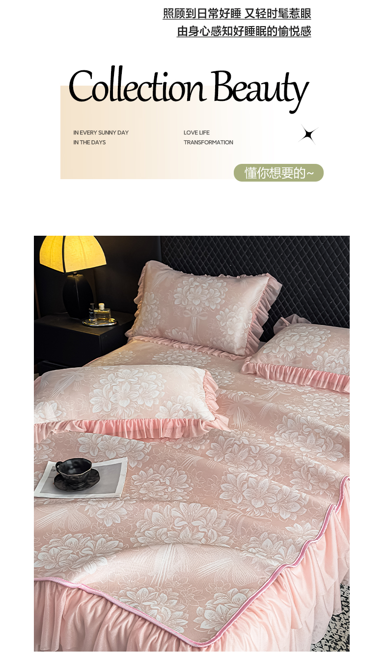 • 91家纺网 家纺一手货源 找家纺 (总)家之硕家纺 2026春夏新款凉感提花床裙款凉席席子,百合捧花--粉,百合捧花--浅灰,百合捧花--深蓝,百合捧花--天蓝,蔷薇玫瑰--绿,蔷薇玫瑰--深灰,蔷薇玫瑰--深蓝,蔷薇玫瑰--天蓝