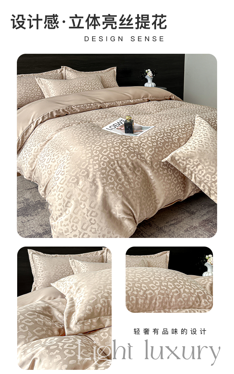当前位置: 91家纺网 > 商品网购 > 床品套件 > 四件套 > 其它四件套 > 你好美丽 2026新款豹纹水洗真丝提花简约暗合四件套 豹纹·香槟色