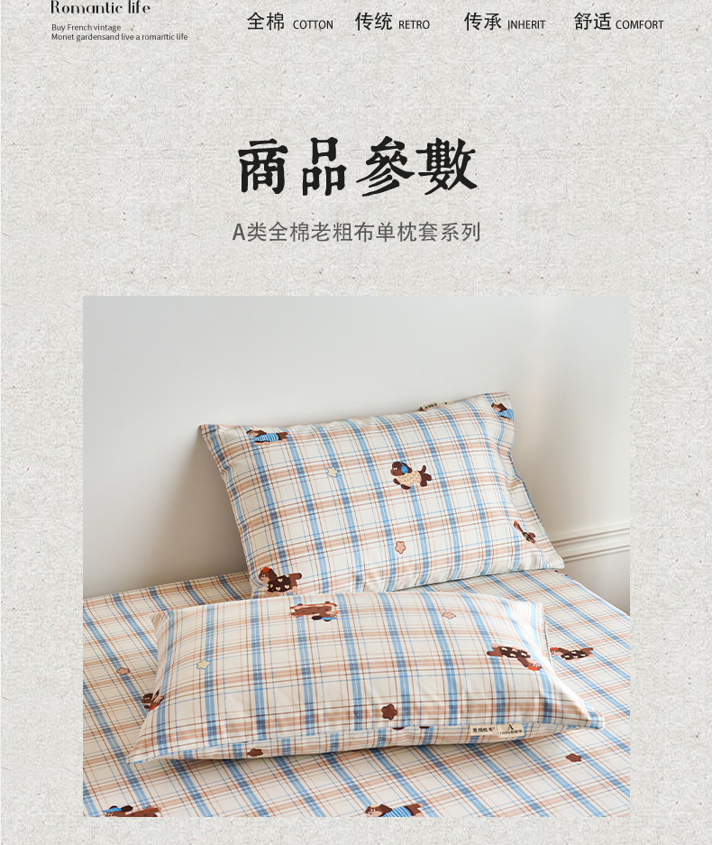 商品名称:春皖家纺 2026新款全棉老粗布普通款单枕套枕套单件 听枫