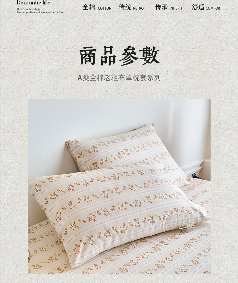商品名称:春皖家纺 2026新款全棉老粗布普通款单枕套枕套单件 知否