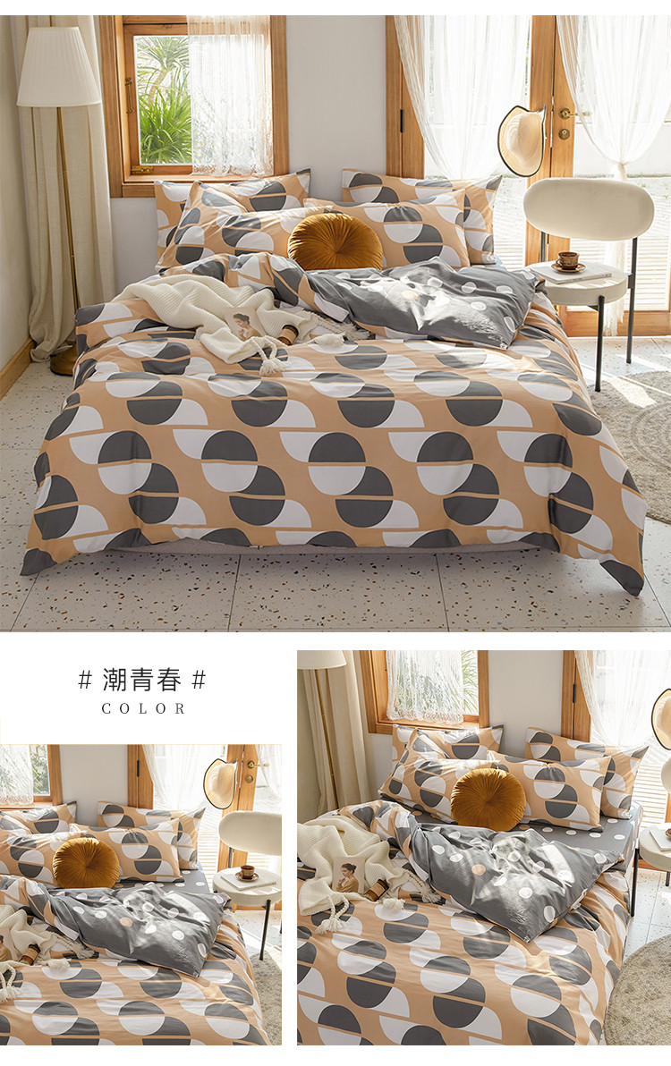 (总)仟网汇 2021新款春夏全棉北欧风几何系列四件套