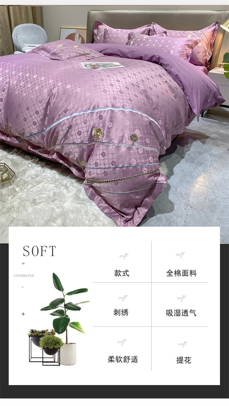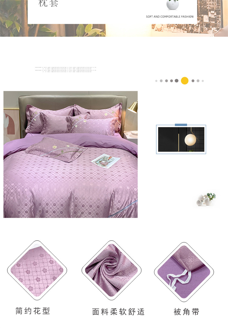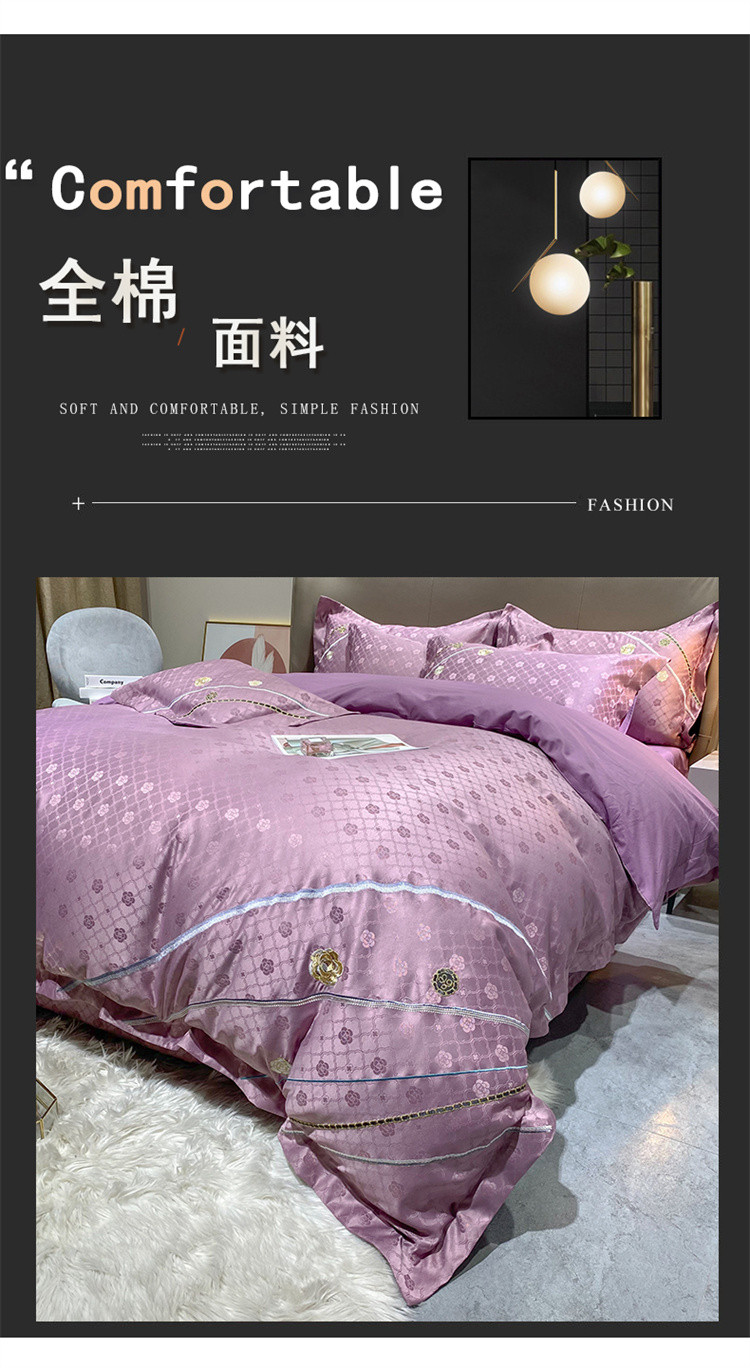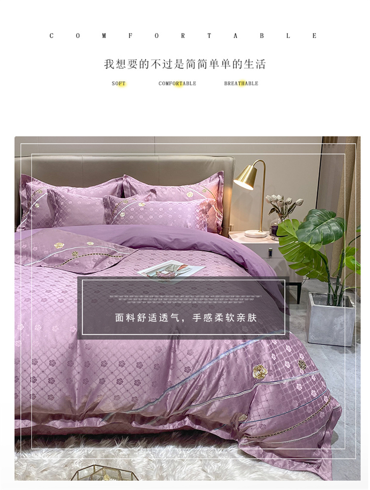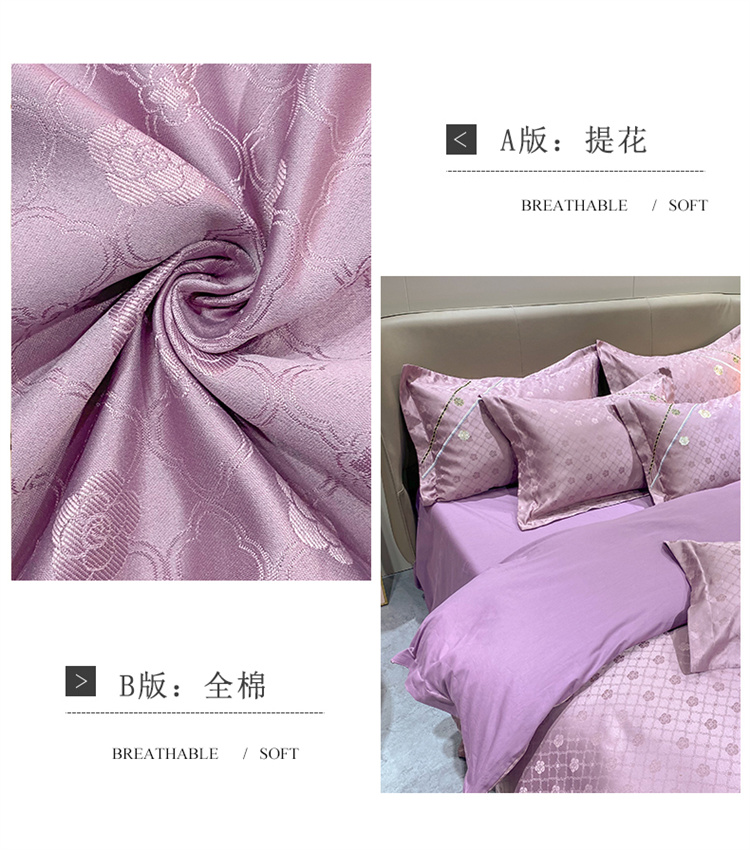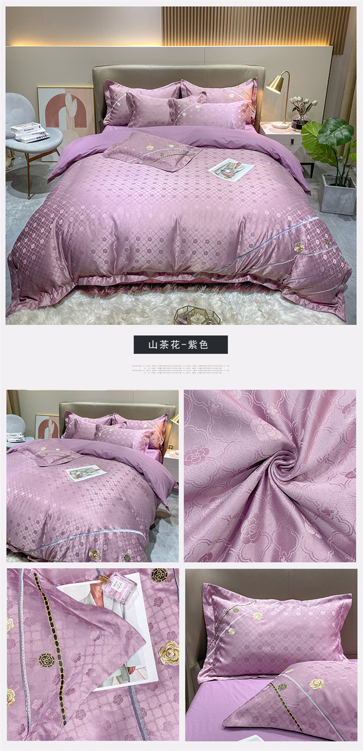 商品名称:安妮家居2021新款山茶全棉提花四件套 山茶花-紫色