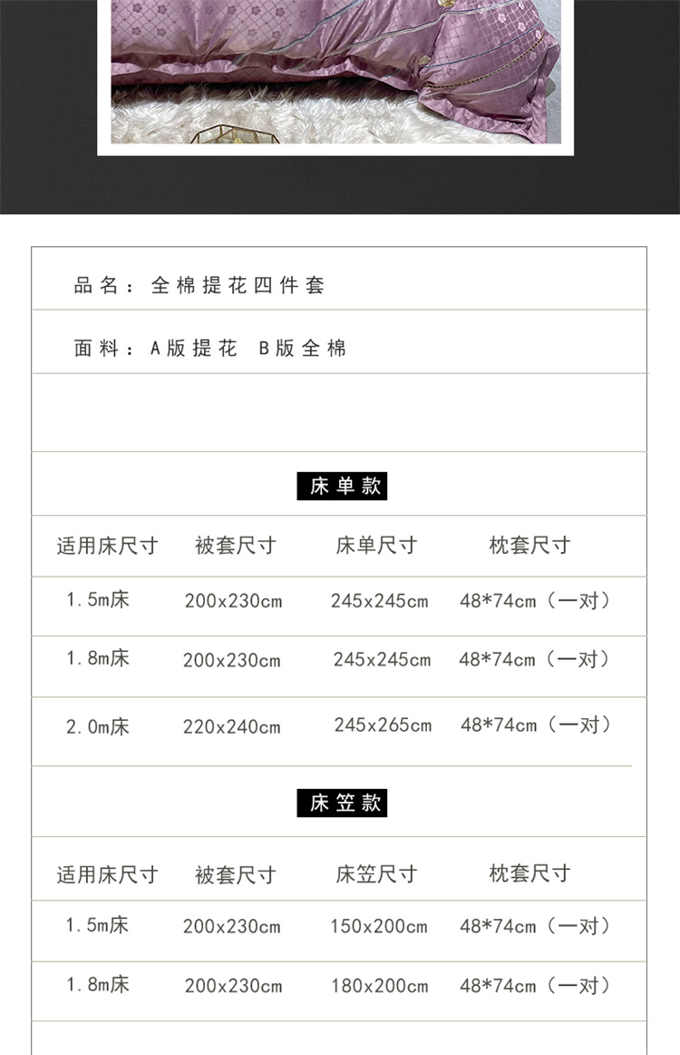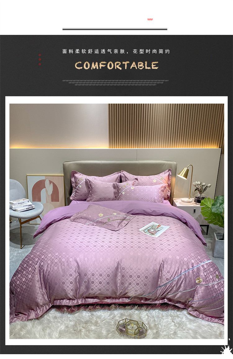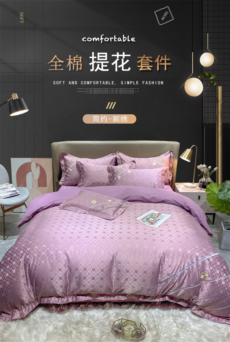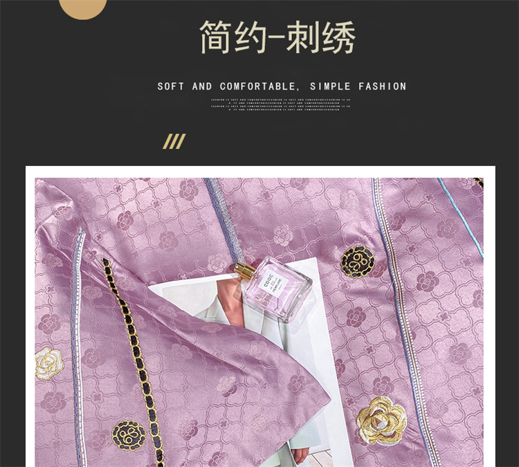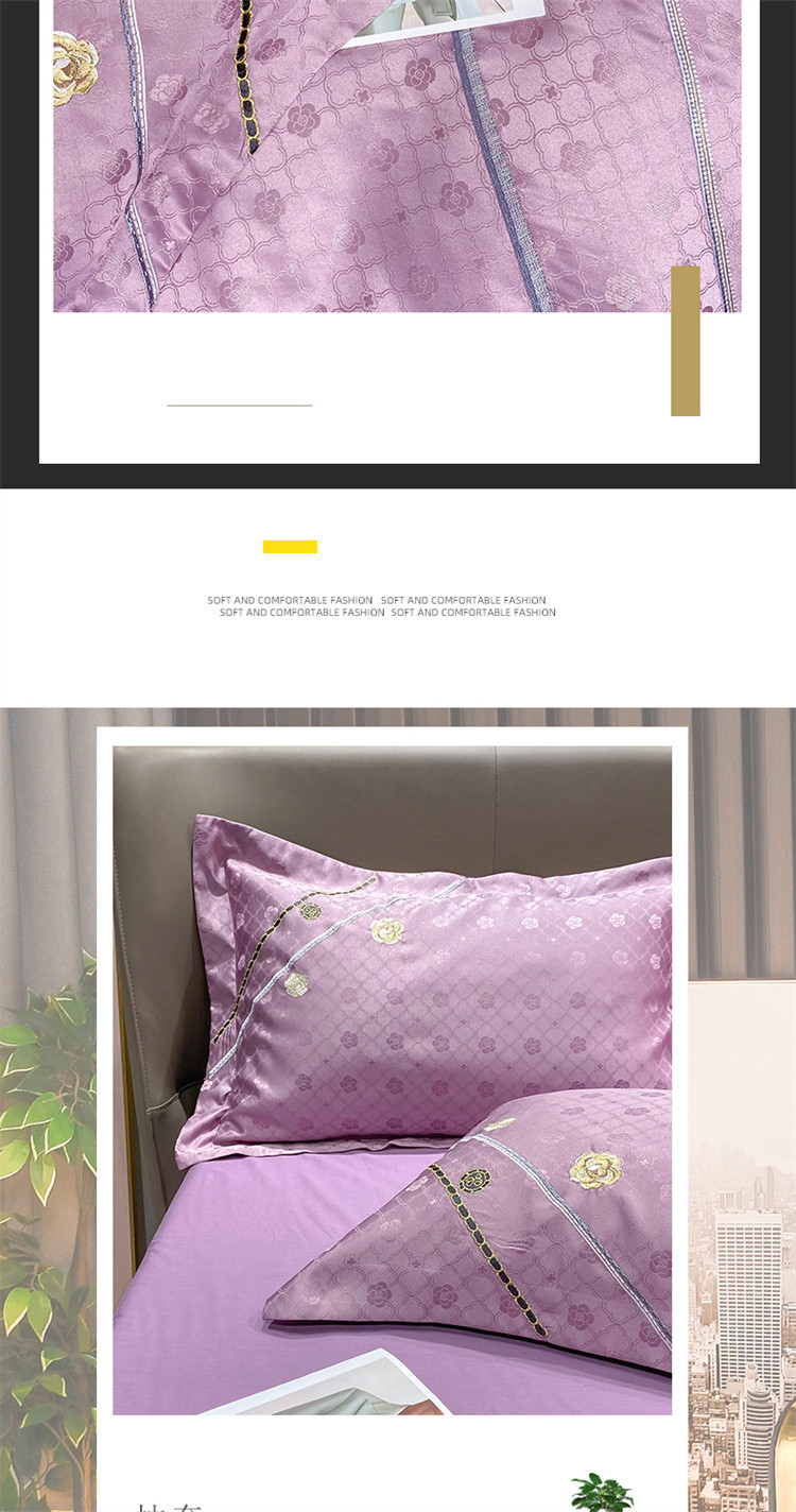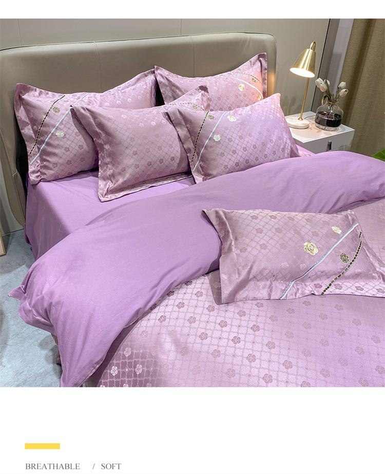 商品名称:安妮家居2021新款山茶全棉提花四件套 山茶花-紫色