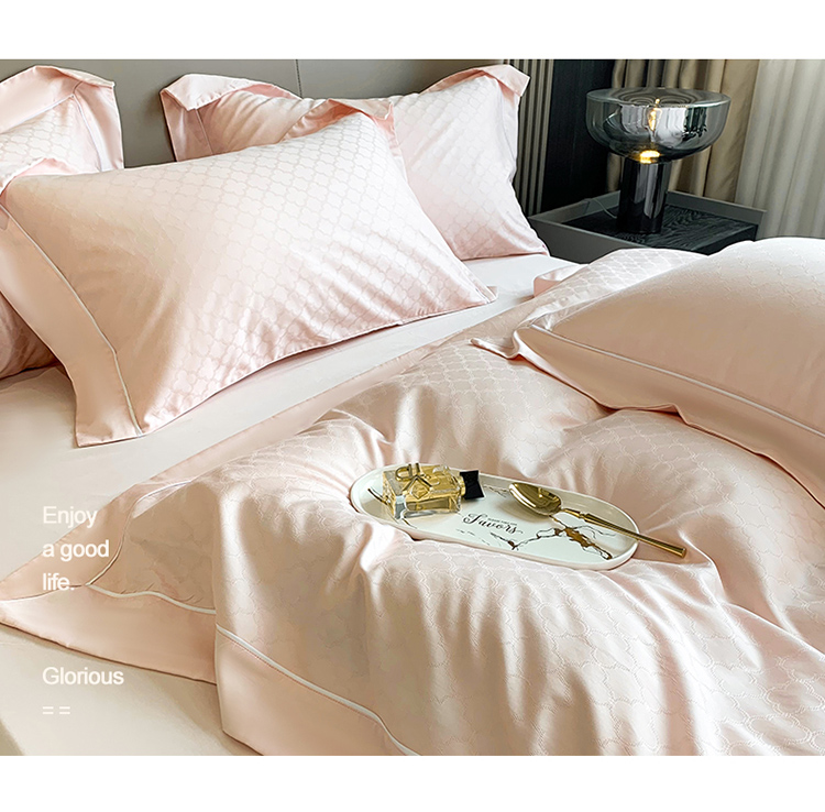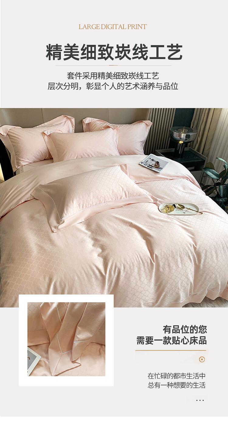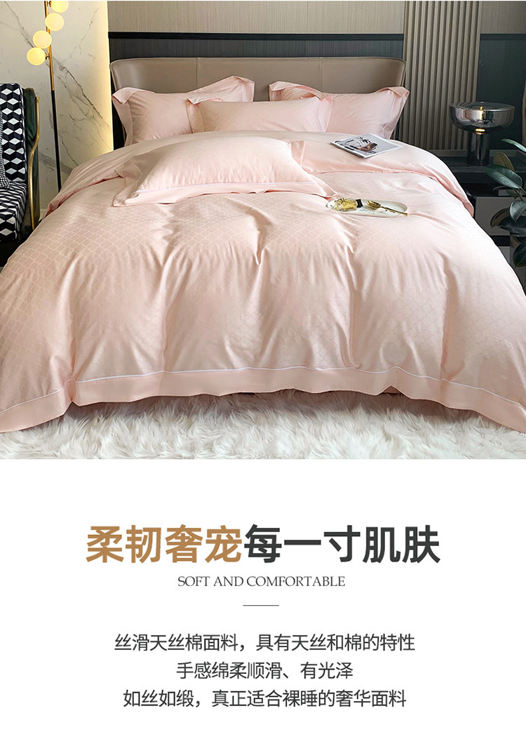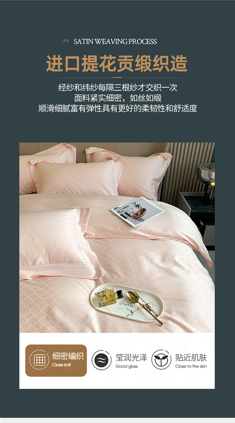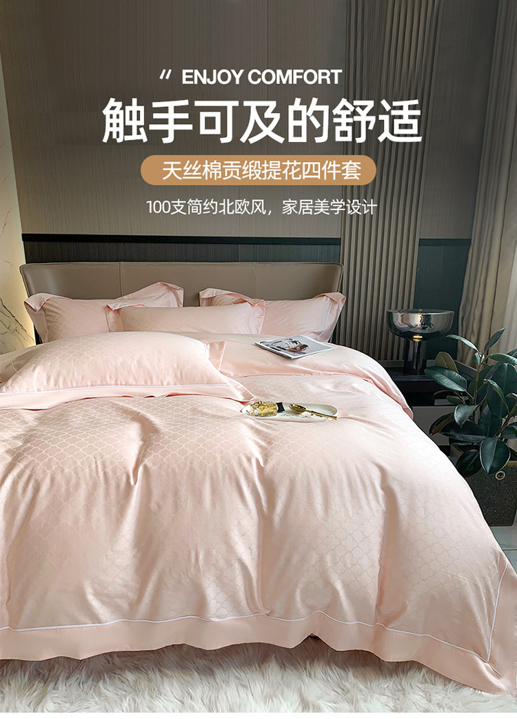 商品名称:娇逸家居 新款100支天丝棉贡缎提花四件套(同系列有夏被) 四叶草-藕粉