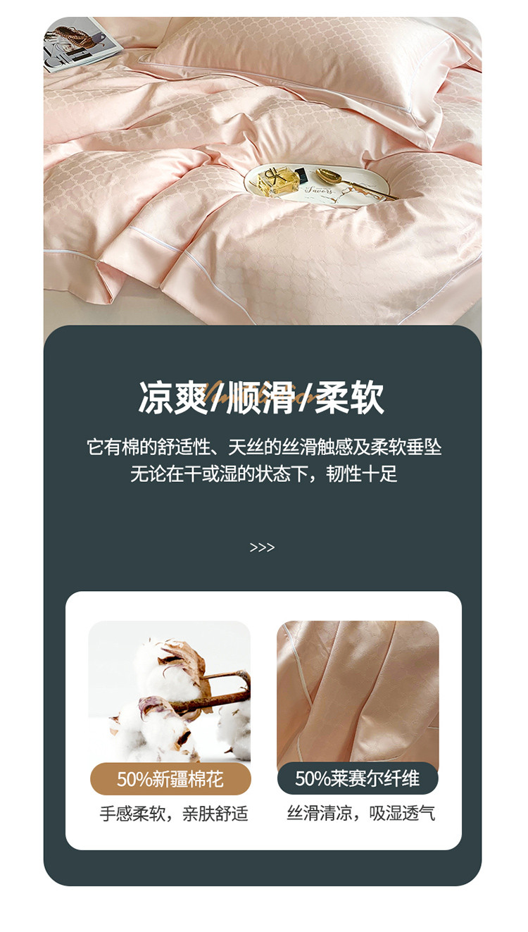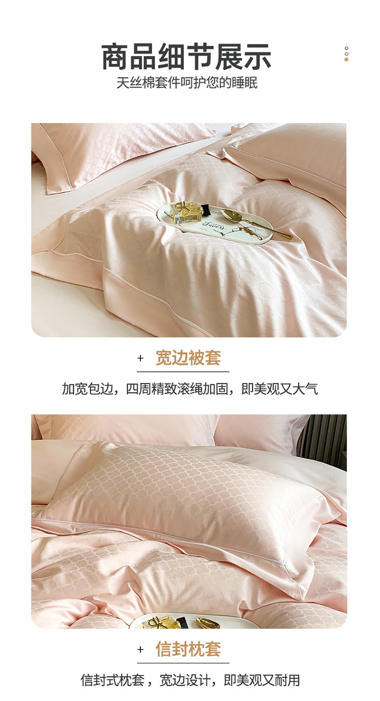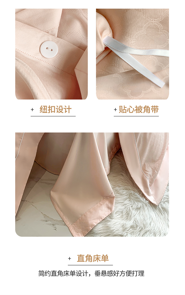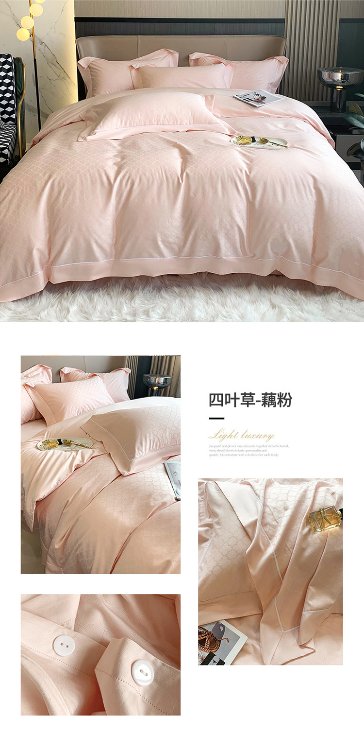 娇逸家居 新款100支天丝棉贡缎提花四件套(同系列有夏被) 四叶草-藕粉