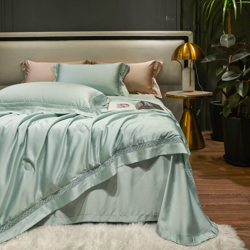当前位置: 91家纺网 > 商品网购 > 床品套件 > 四件套 > 夏被四件套 > 榻尚 2023新款TS-天丝夏被四件套系列-柏曼系列 -水绿